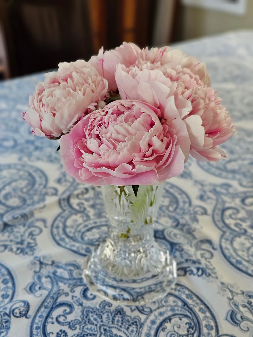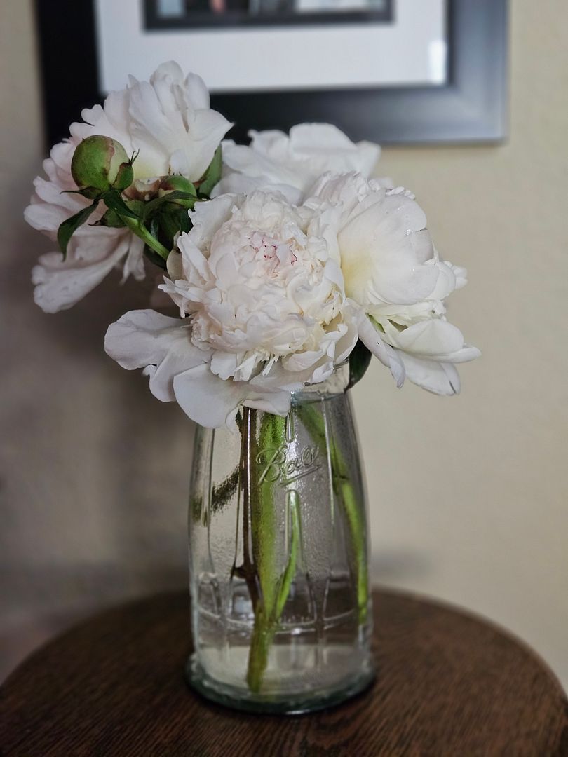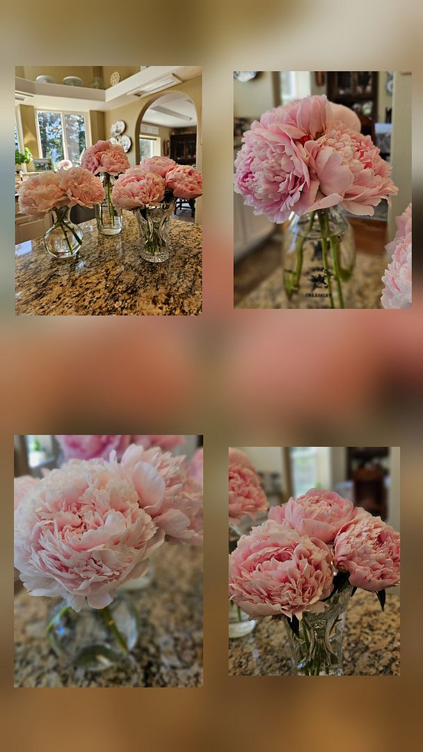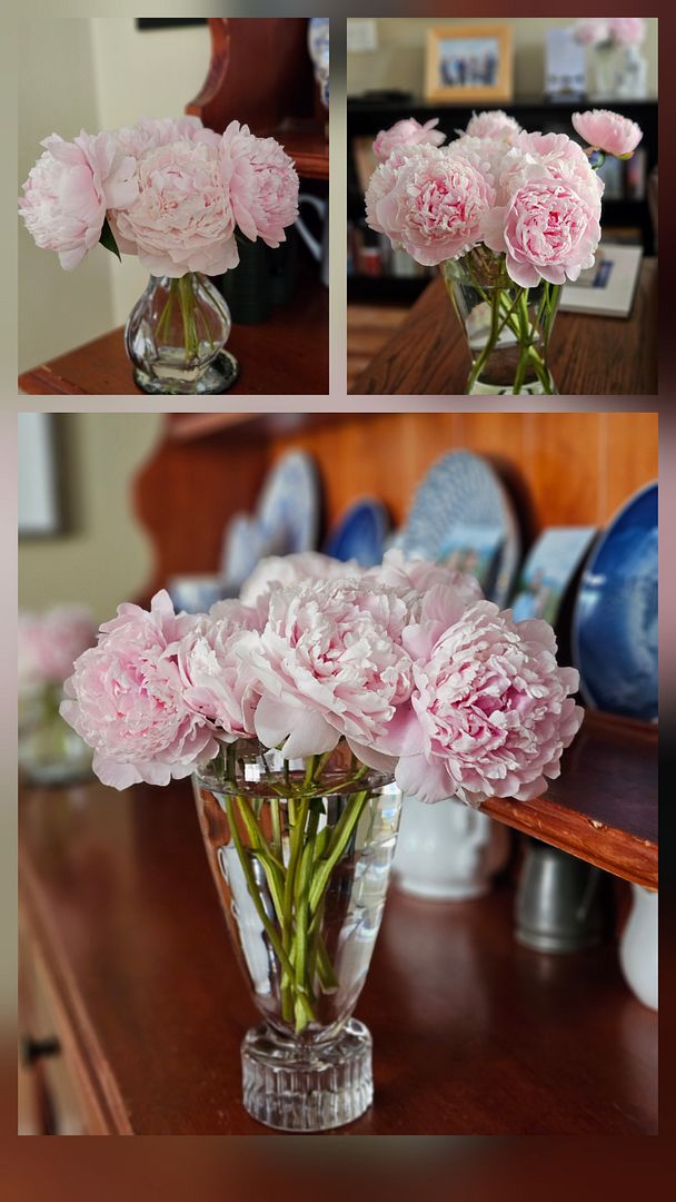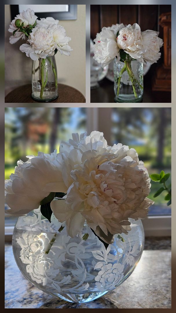 Right now on our property the white and pink peonies are blooming and I’m having a hard time keeping up with them. It’s a wonderful problem to have.