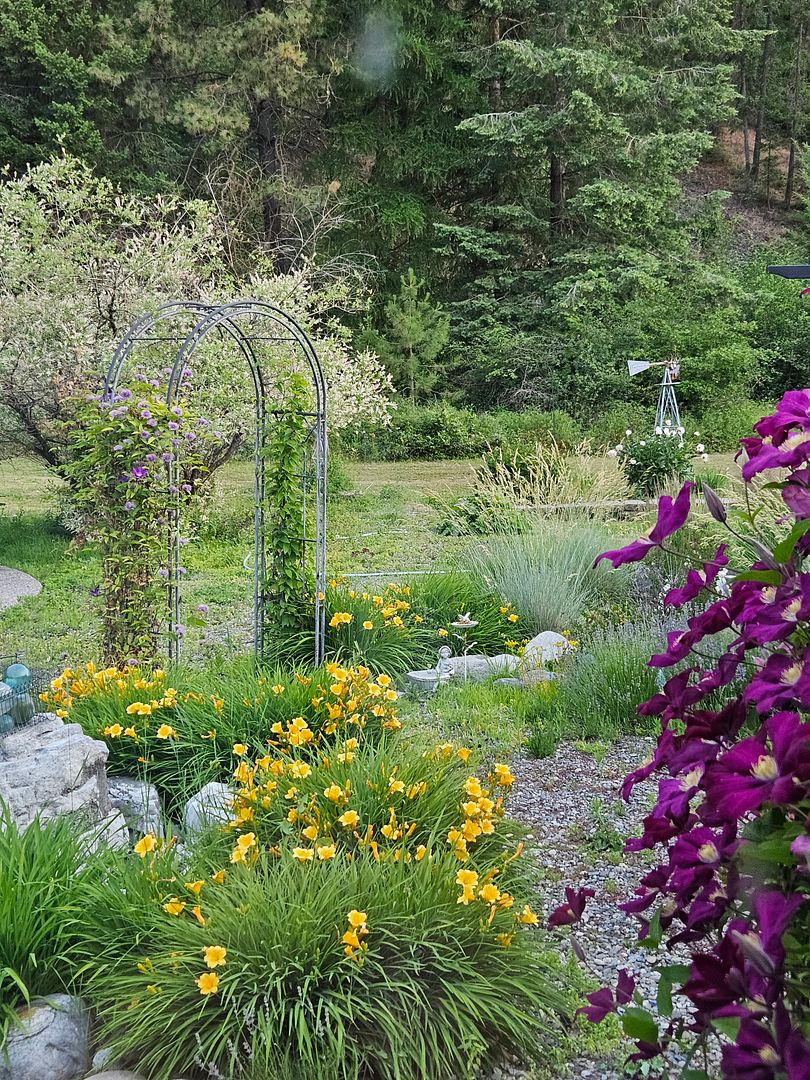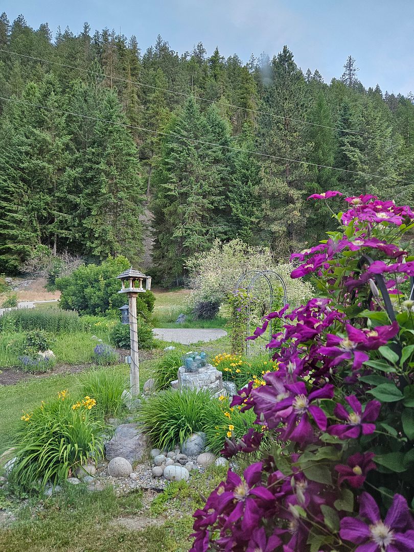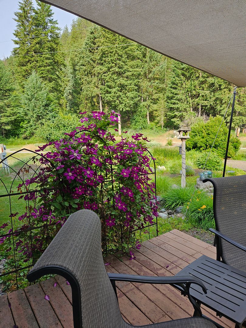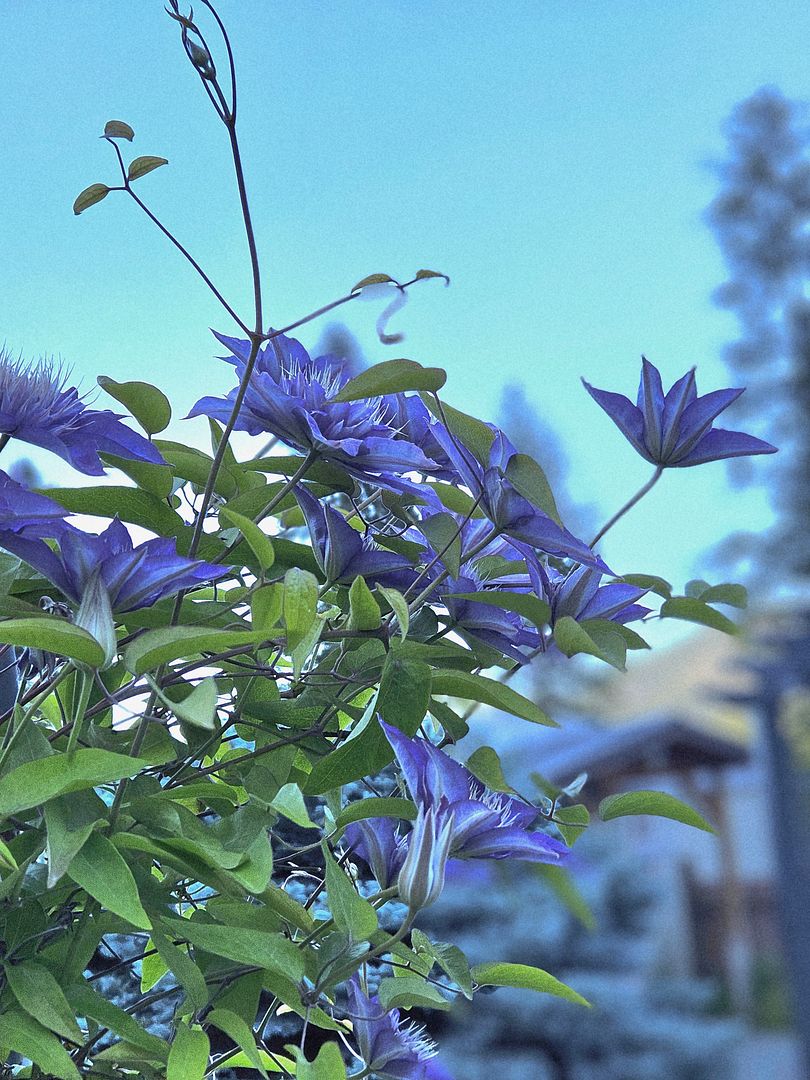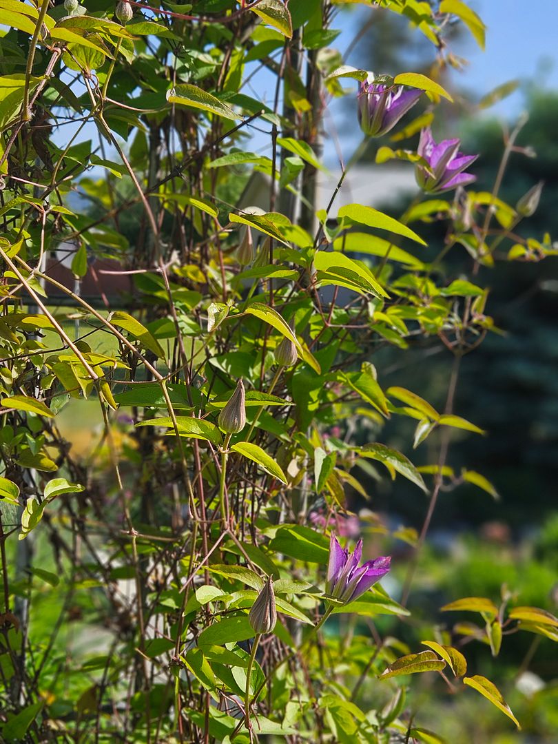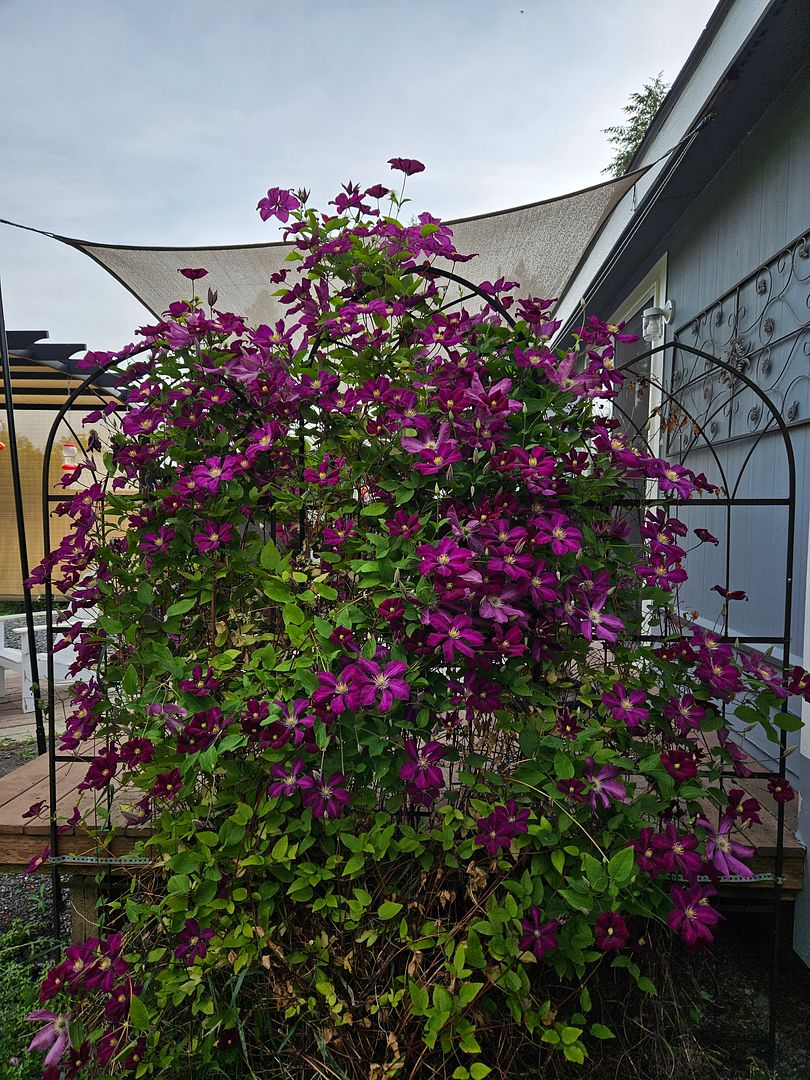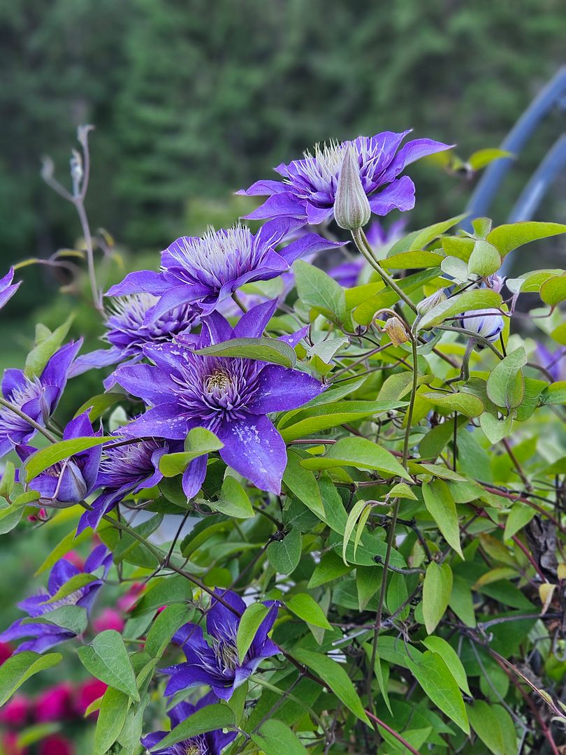 We’ve had a mix of blue skies and rain showers for the beginning of summer. It has been a banner year for our clematis varieties.