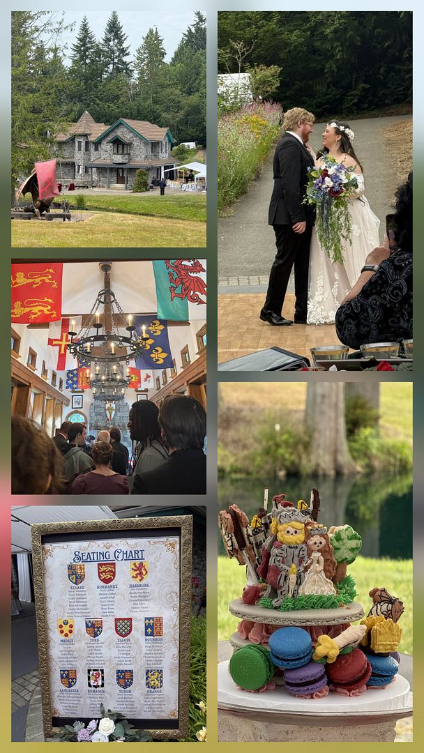 Our daughter attended a Medieval Castle wedding and shared some photos. The wedding was during work hours so Katie and her friend attended without their husbands (they were able to get time off from their jobs). They enjoyed their time and all the medieval touches.