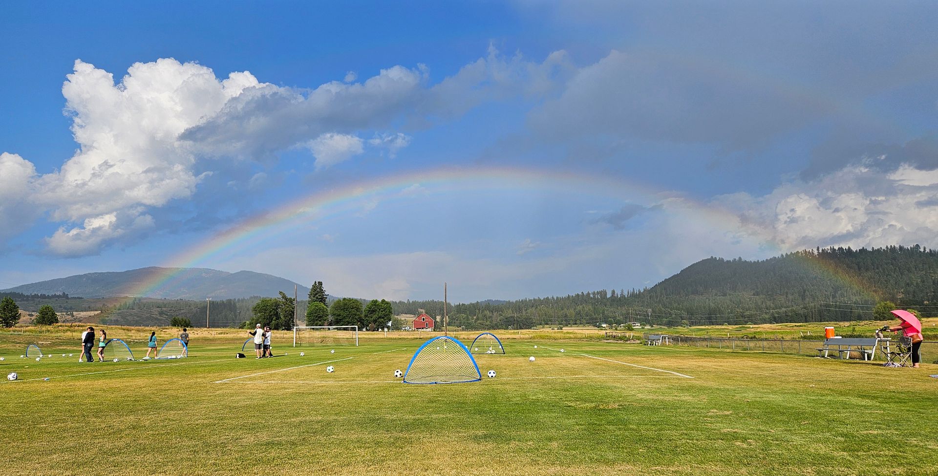 At soccer camp last week we had intermittent showers and winds and a beautiful rainbow!