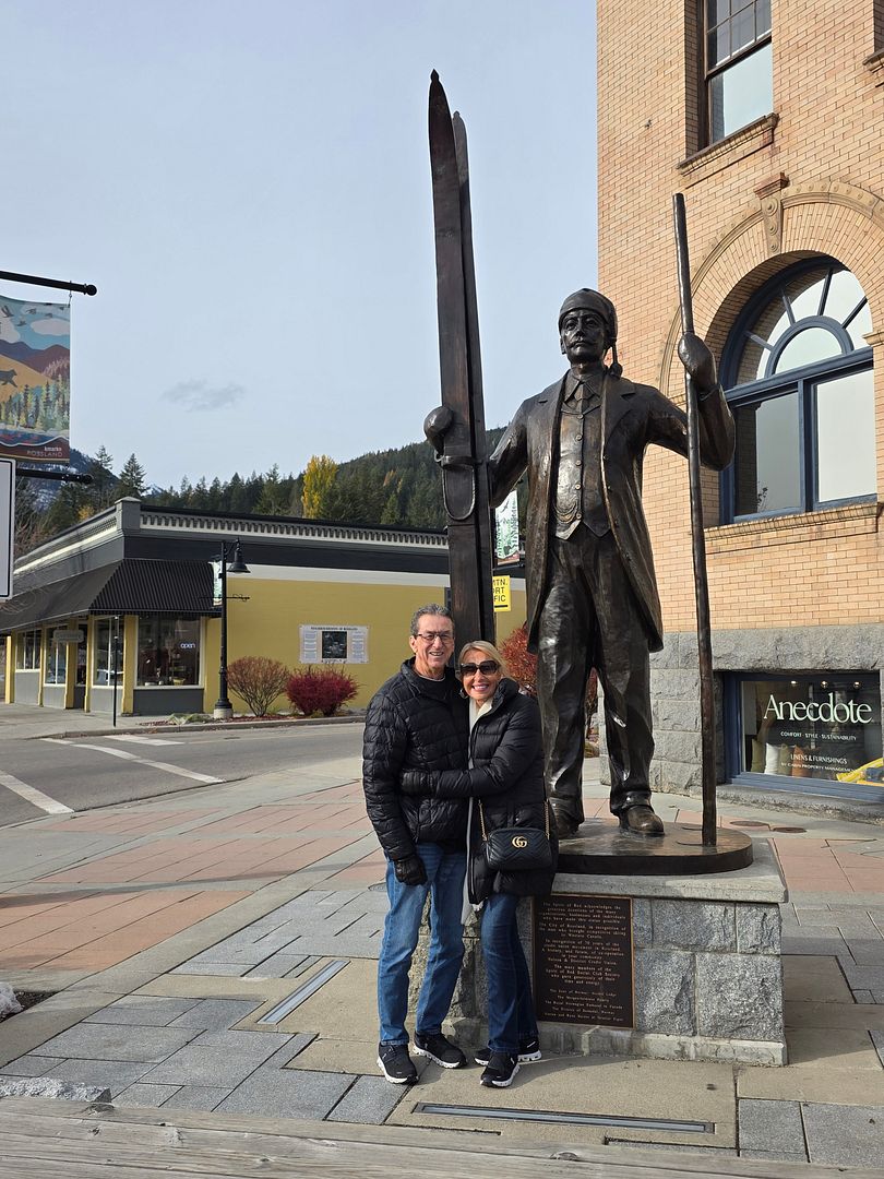 After crossing the border we were in the town of Rossland B.C. in no time finding a parking spot and doing a little exploring before enjoying lunch. First stop at the statue for one of the main things Rossland is known for, skiing.