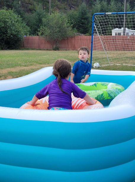 Our Grands are growing up with four seasons and lots of leaves! These photos were from a few years back while helping their Granny blow the leaves into a pile for the city to pick up.