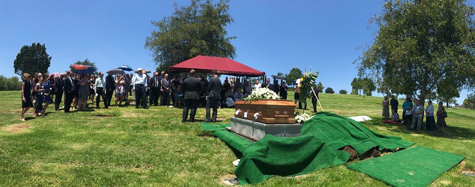 From our Hillside Chapel service we got in our cars and traveled the short distance to our pop’s graveside next to our mom’s in the Summer Terrace area of Rose Hills. Many of our relatives are buried in different sections of this Memorial Park.