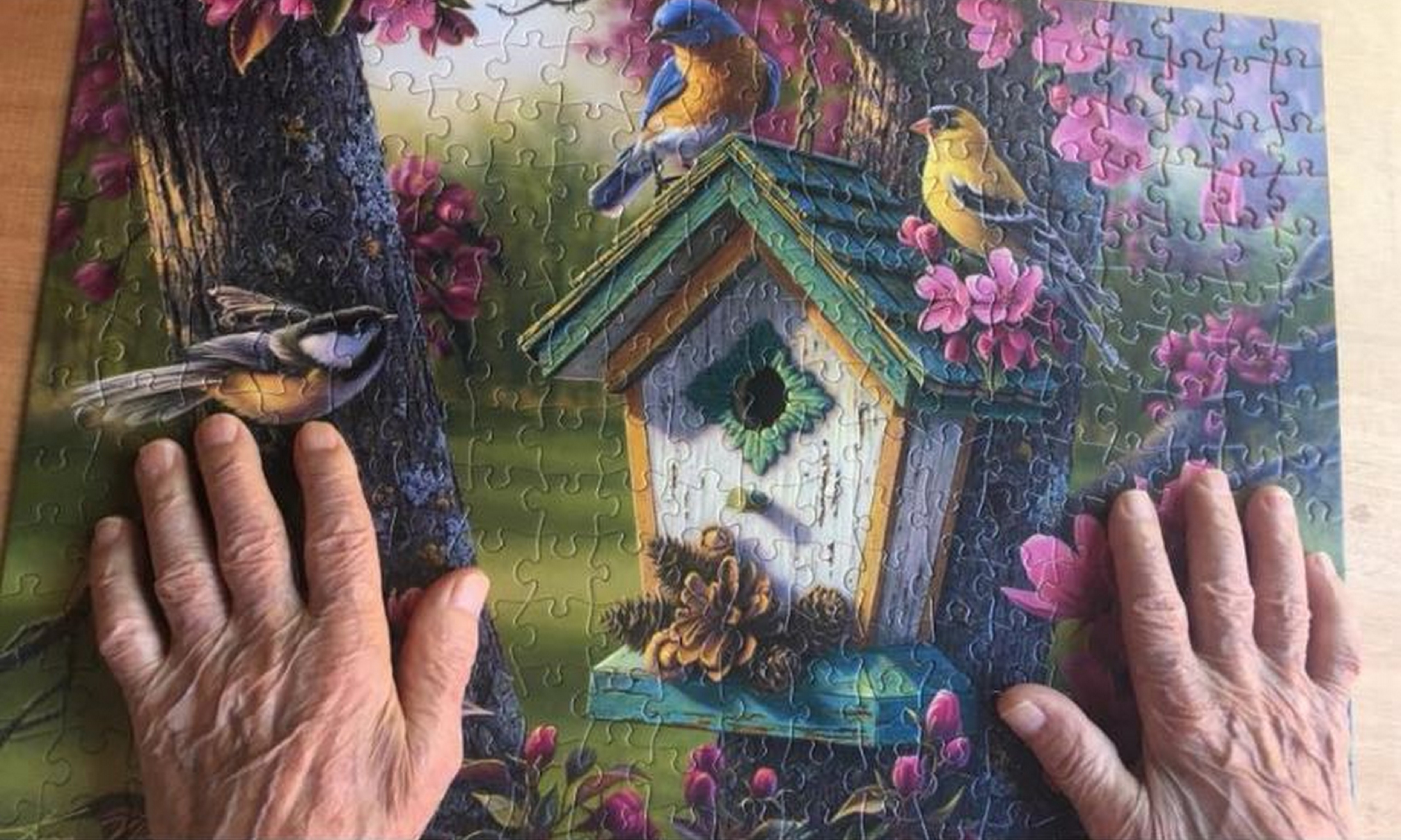 My sister Lana read this portion from the Bible that was referenced on this puzzle our Pop put together in his last years. These are his hands.