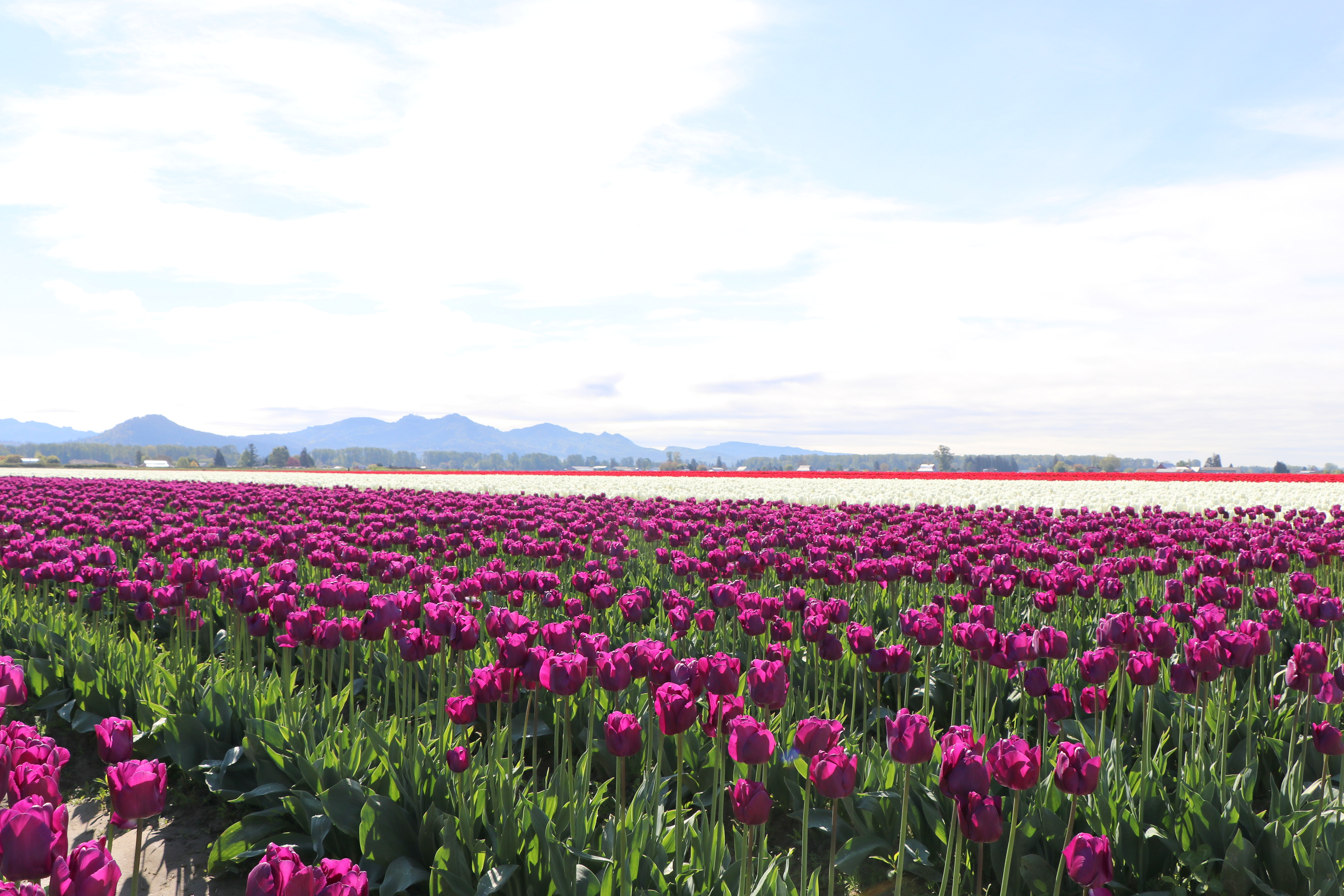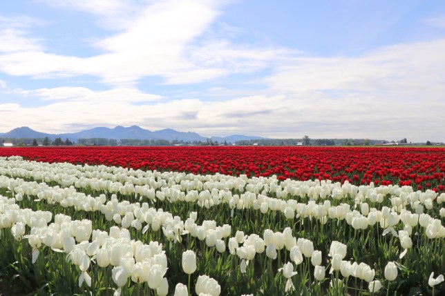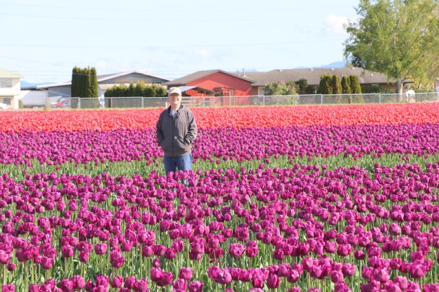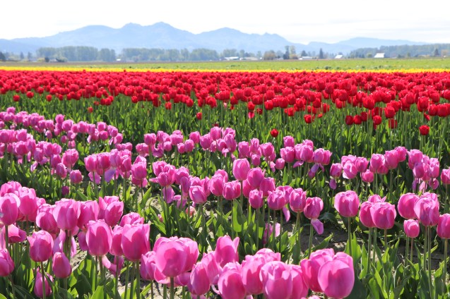 The Skagit Valley Tulip festival in Washington State and visiting Roozengaarde farm and garden in Mt. Vernon, Washington.  Skagit is the county where you find the towns that grow tulips in abundance. We’ve enjoyed tulip farms and tulips in Mt. Vernon and La Conner.