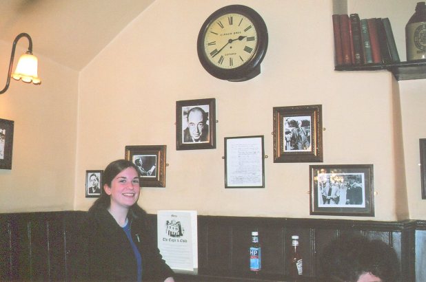 The pictures on the wall are of C. S. Lewis, Tolkien, and other Inklings, plus letters, etc. We had a bite to eat and a pint was raised to toast our respected authors! “It comes in pints?”