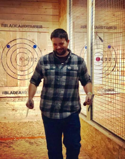 The Birthday boy deserves one photo all by himself. He landed both those axes in the center circle, throwing them both at the same time!