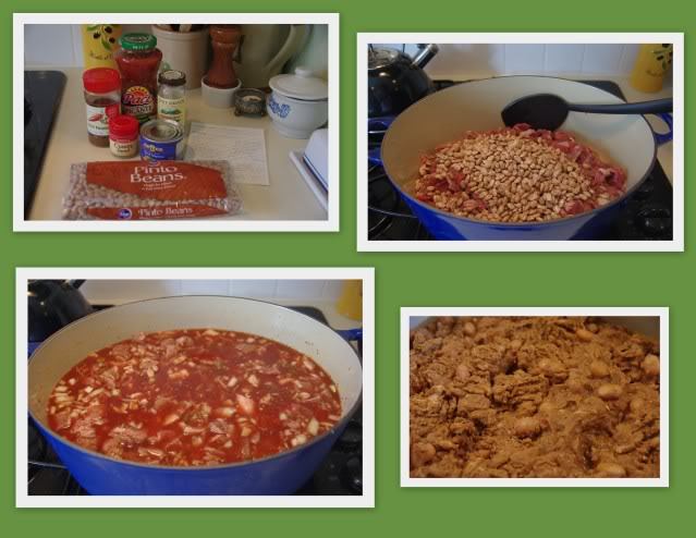 Heat 2 tablespoons of oil in pan and sear boneless pork on all sides. Put all ingredients in dutch oven or crock pot, placing the seared meat on top. Cover and simmer about 5 hours or until roast falls apart and the beans are soft. Uncover shred the meat and cook to thicken to desired consistency. If using a crock pot cook on low for 8-9 hours. Check after 5 hours to make sure the beans haven’t absorbed all the liquid. Add 1 cup water at a time if you need to. After the meat is cooked and beans are soft shred the pork.