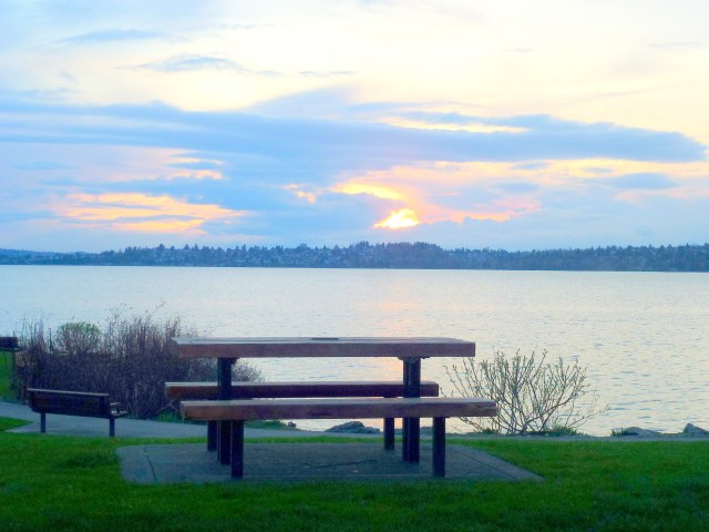 A lovely evening on the shores of Lake Washington looking across the lake to Seattle.