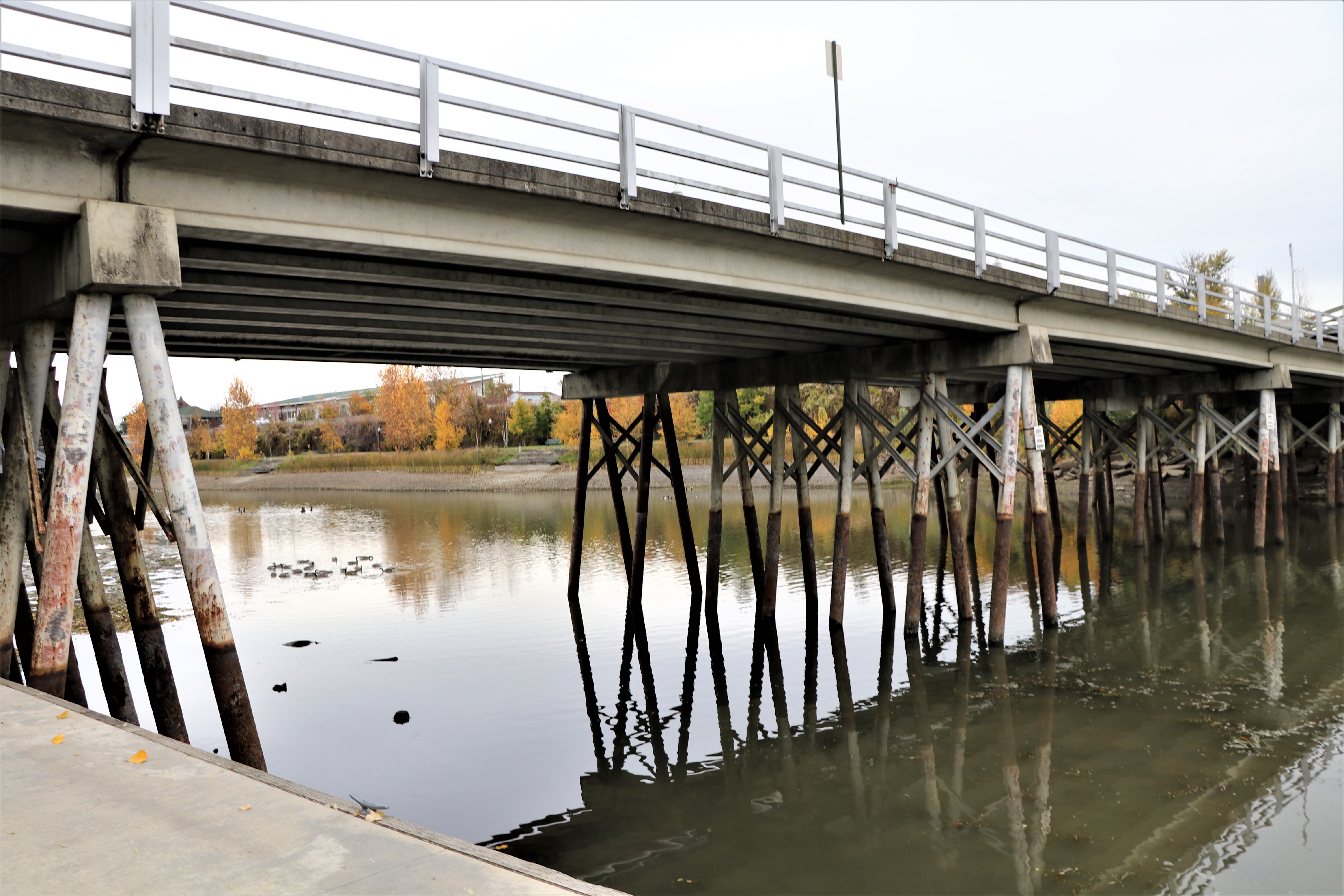 When we hit the end of the trail this bridge took us up and over the railroad tracks to the waters edge.