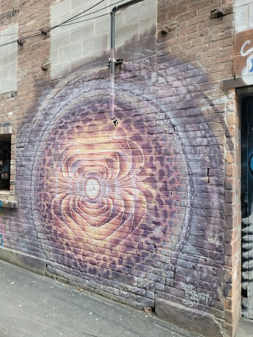 When we got back to our car I saw some graffiti that looked interesting in an alleyway and went across the street to take some photos while Dear waited in the car.