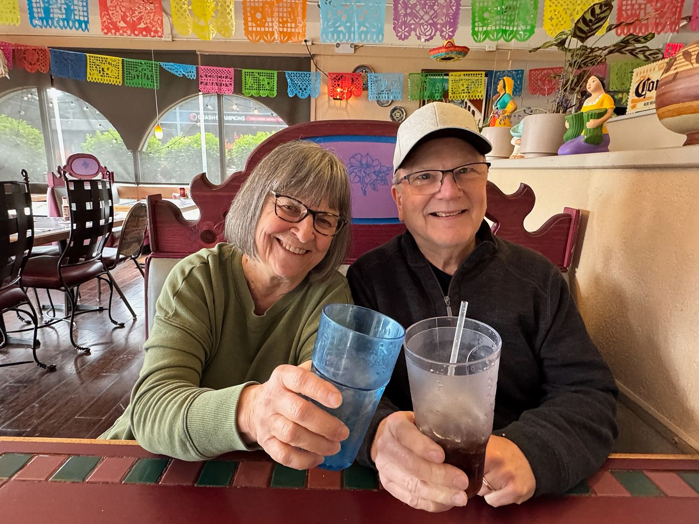 With eyes dilated we stopped at Hobby Lobby (no purchase), Home Goods (2 small items purchased), and Costco for gas and to order new glasses (big purchase$$). We also bought a King comforter and some real maple syrup that were both on sale.