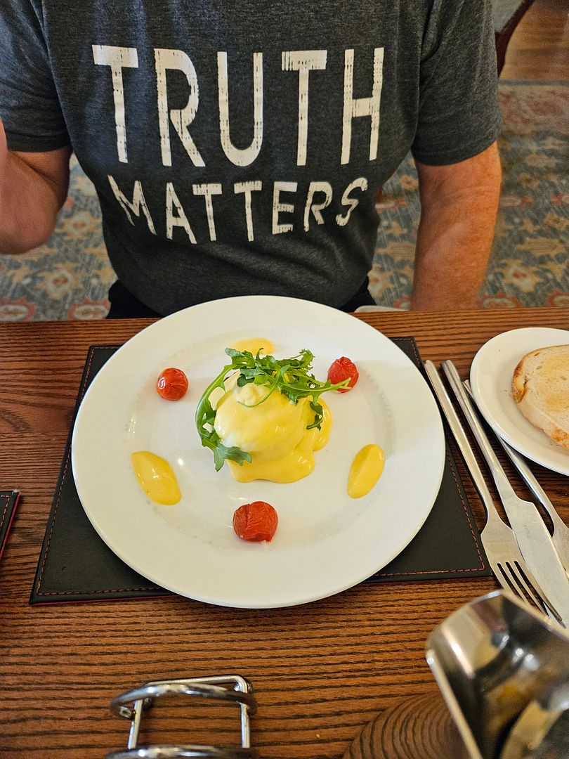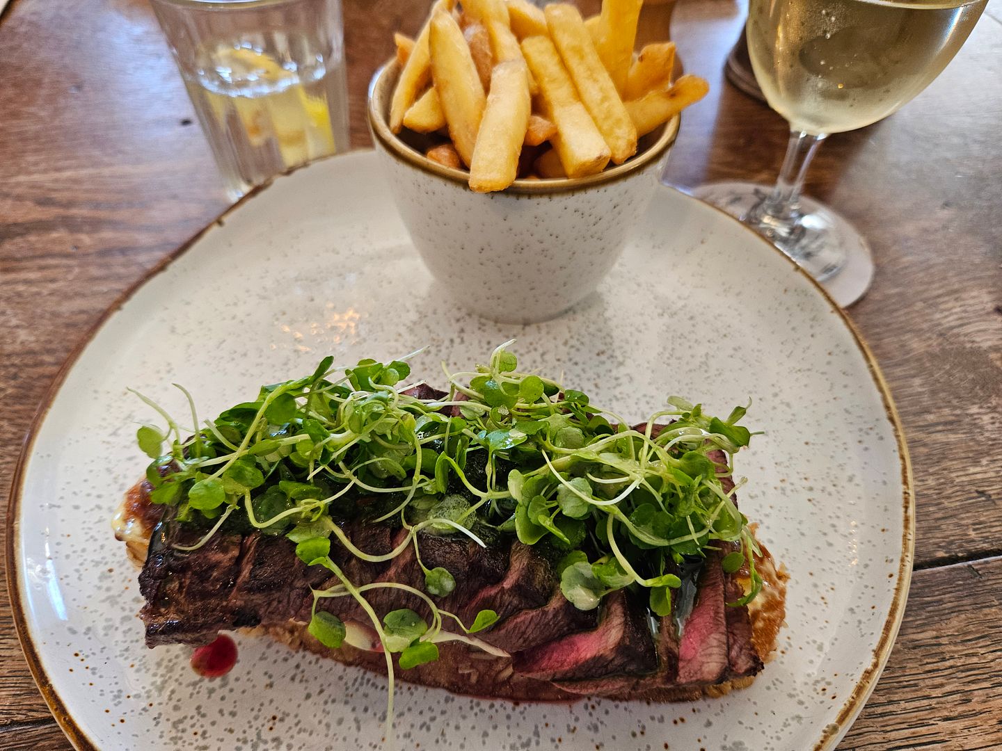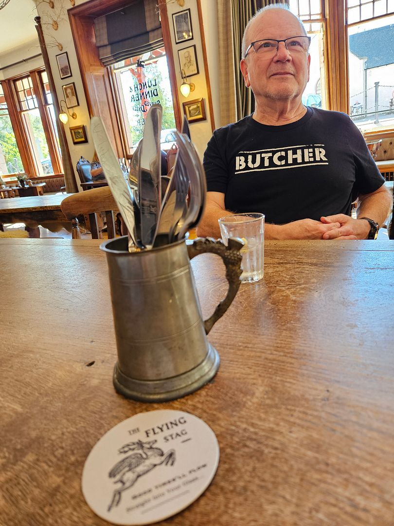 We waited for lunch service to begin at The Flying Stag and enjoyed our surroundings. On this very warm day air conditioning would have been appreciated. Windows were opened and we had some cooling.