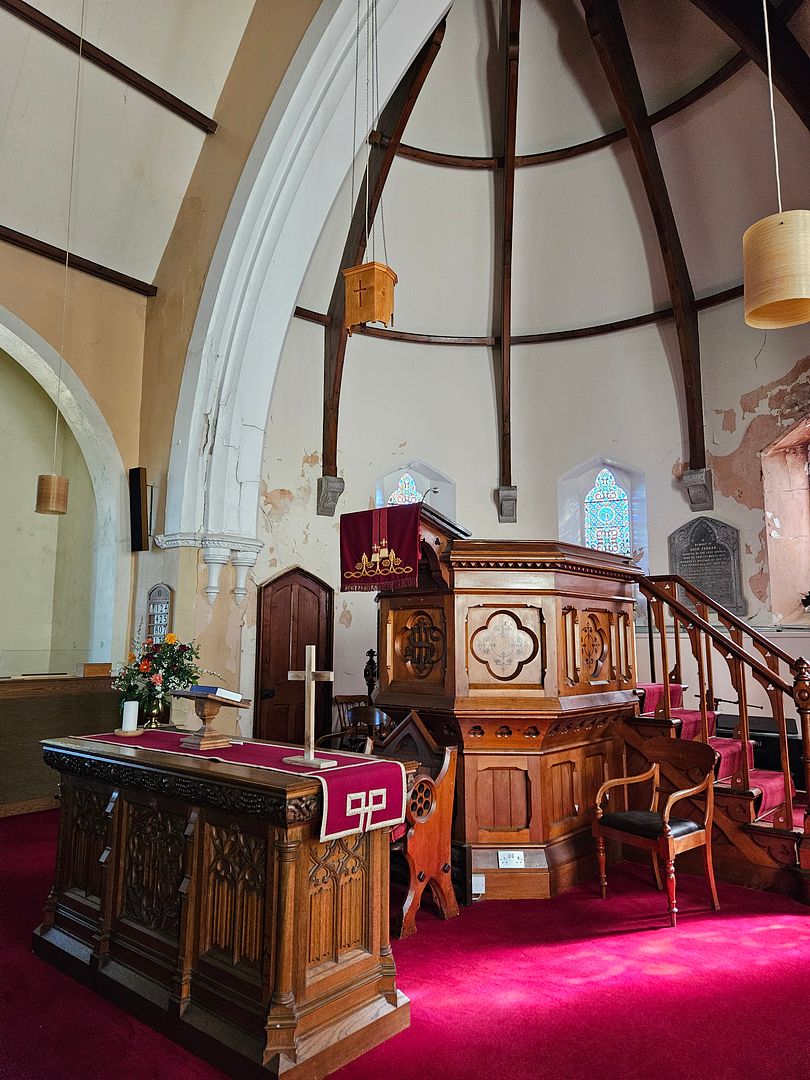 Braemar church is built in the shape of a cross with a very prominent pulpit which reflects the significance of the preaching of the word by its founders.