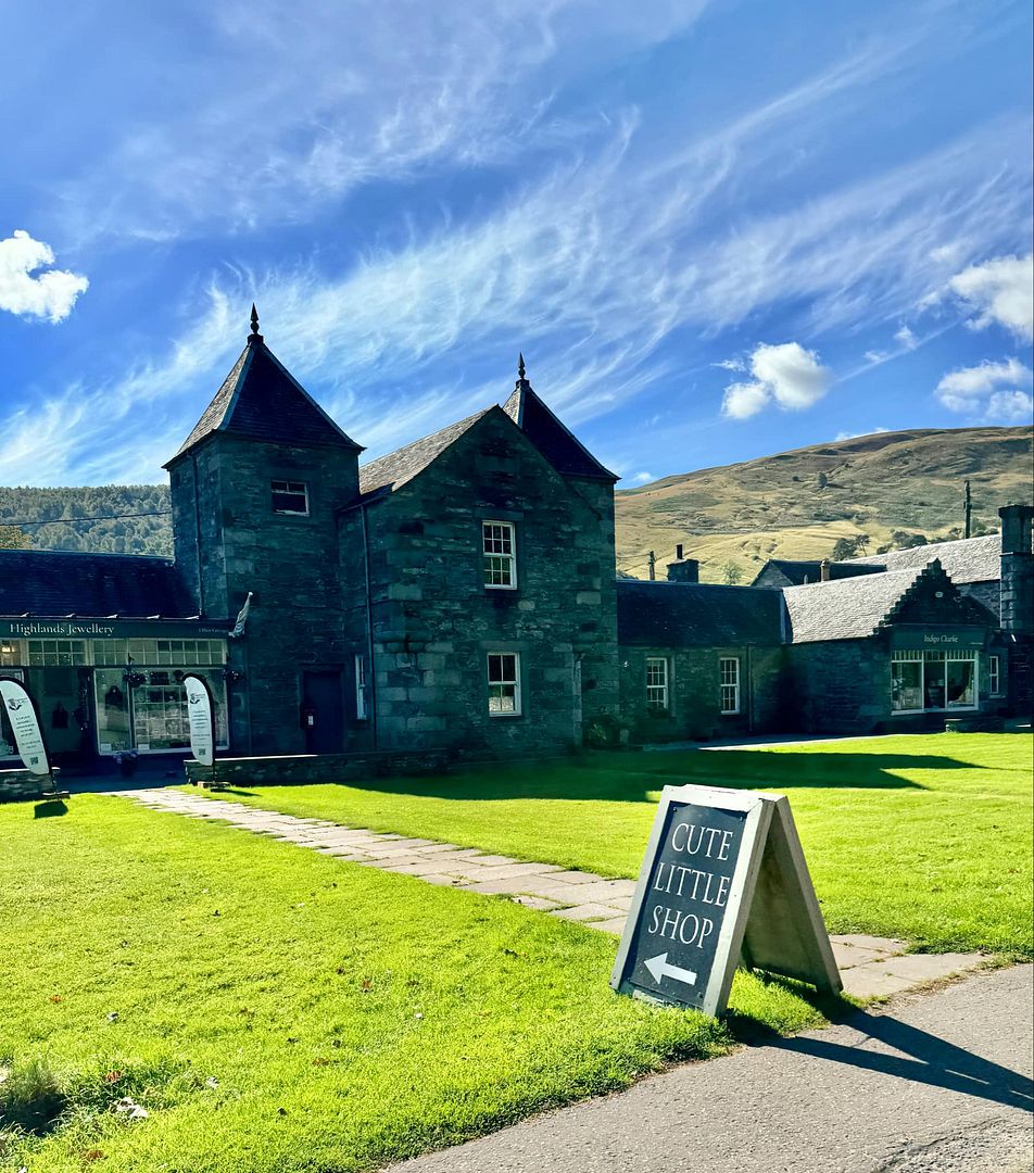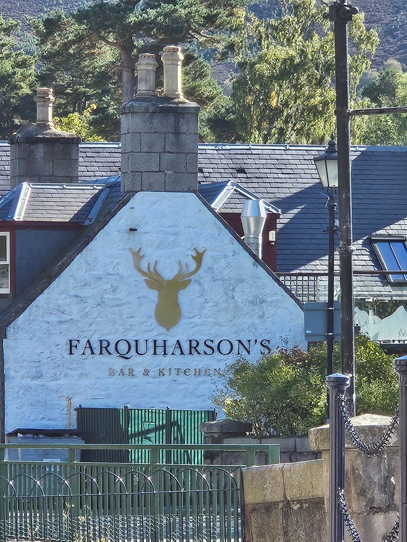 Continuing on our journey through the Cairngorms on Wednesday September 18th, our lunch stop was in Braemar. This was a very busy village with tourist buses and many visitors. We found a parking spot in front of the Fife Arms, a 5 star hotel in the Highlands.