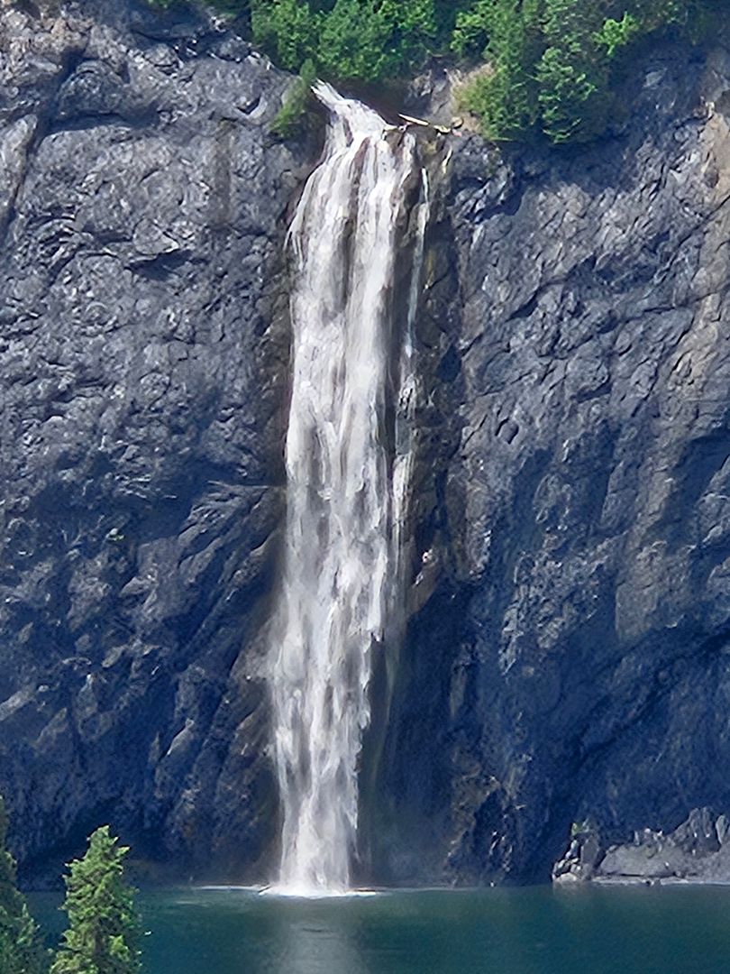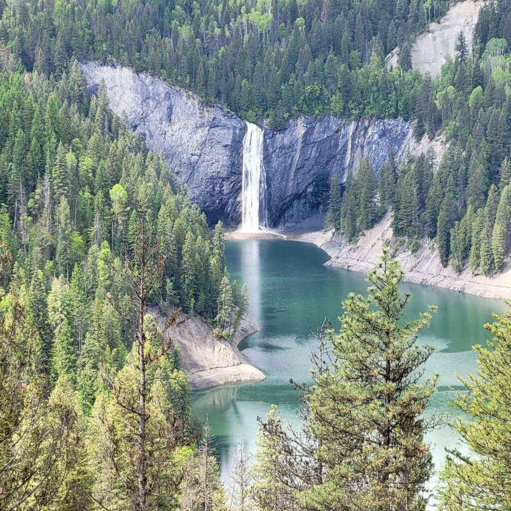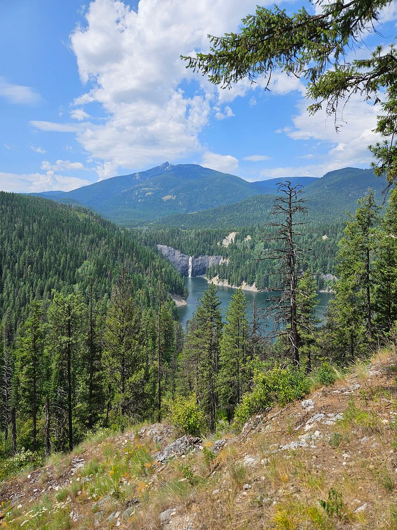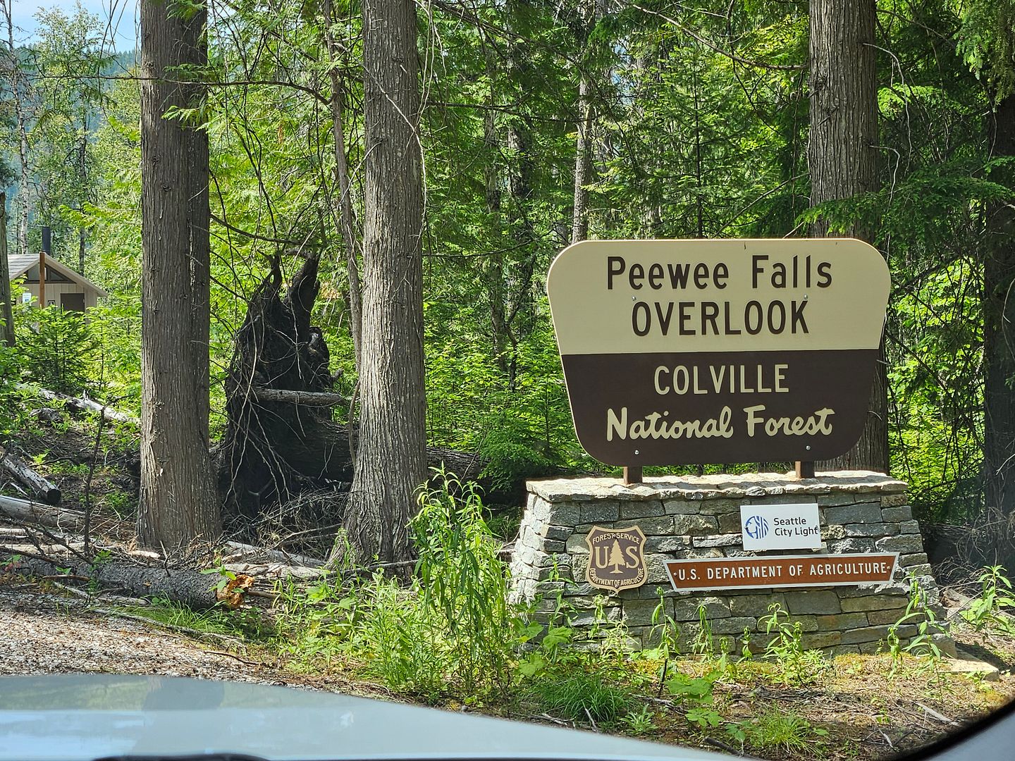 After leaving the Boundary Dam Vista House on Thursday June 12th we took a right turn off the National Development Road 3165 onto NF-325 to reach the Pee Wee Falls Overlook. It was a twisty primitive road and but before too long we were in another nice parking area with picnic tables, a nice restroom and well maintained trail to the Overlook.