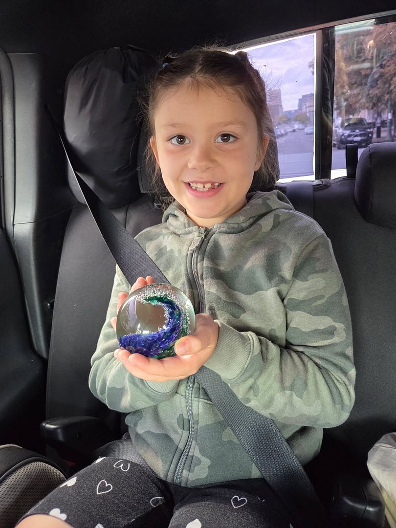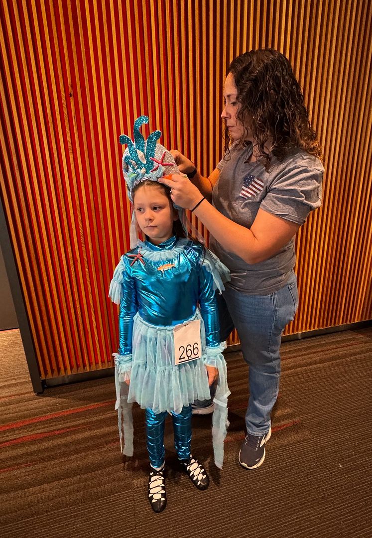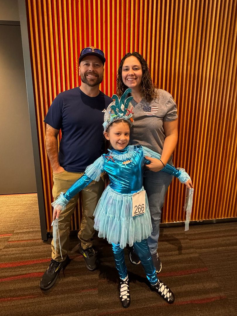After lunch on their way home Dan and Jamie stopped by the convention center to pick up Addy’s prize for her creative under the sea dance and costume.