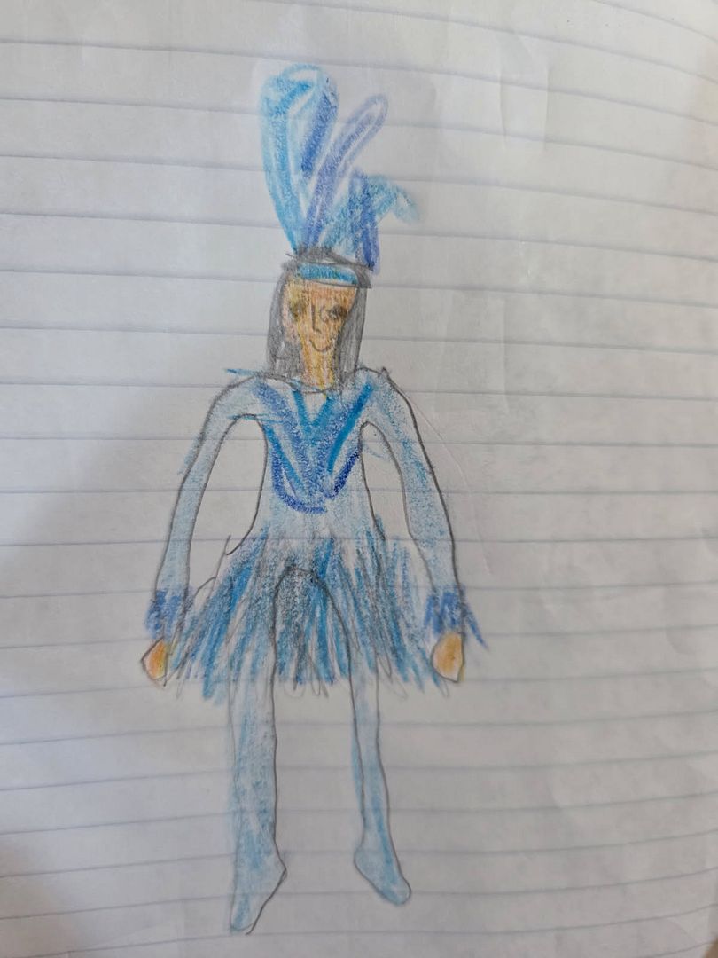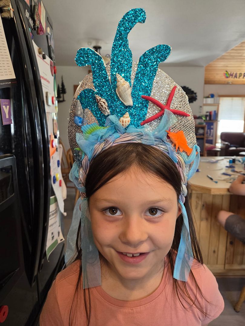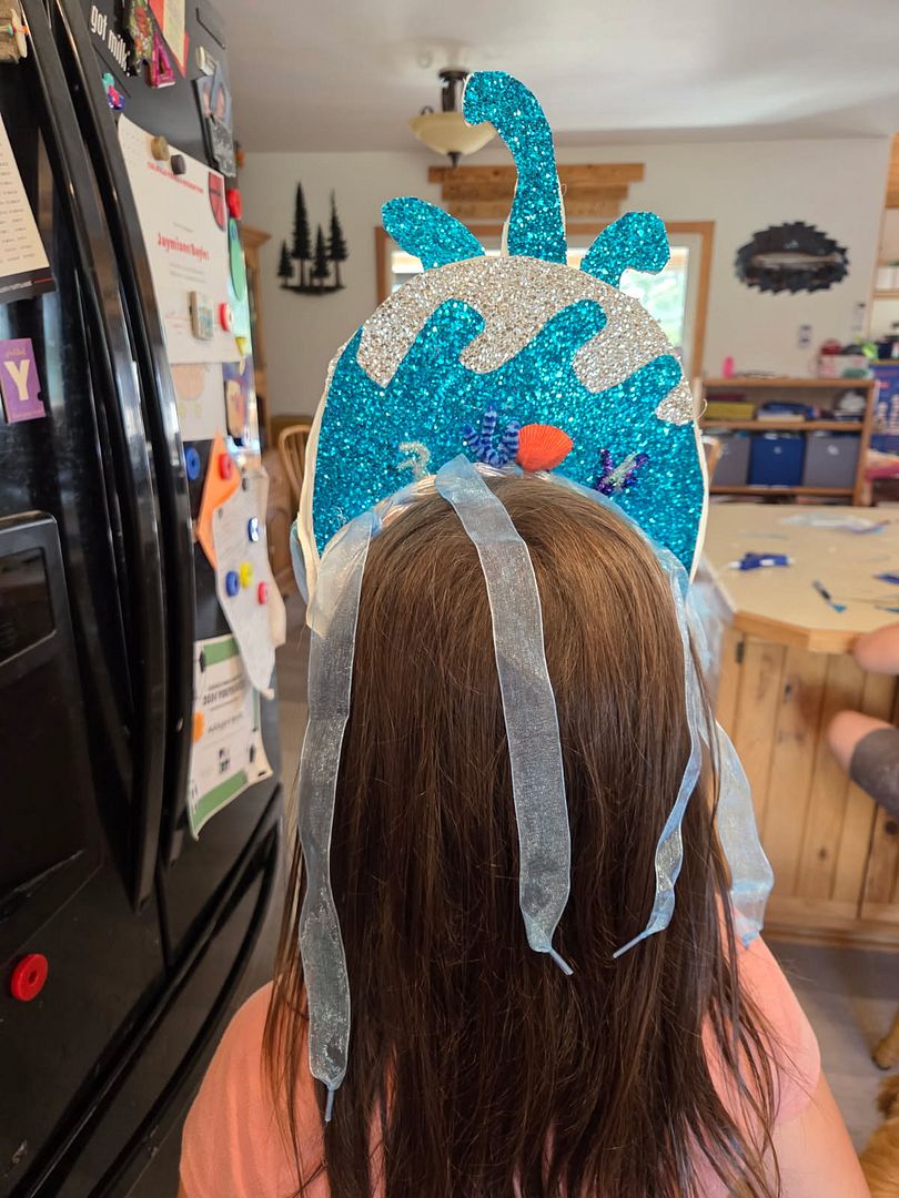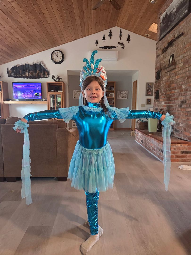 This is the outfit conception that Addy came up with thinking about water, ‘under the sea’. Here was the completed outfit Addy and her Mom created.
