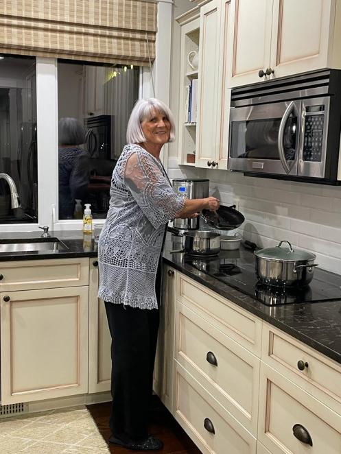 Speaking of Judy, the hostess with the mostess, she single handedly cooked us the main meal portion for the evening. Her hubby Elmer is always available to lend a hand, help serve and wash up the dishes!