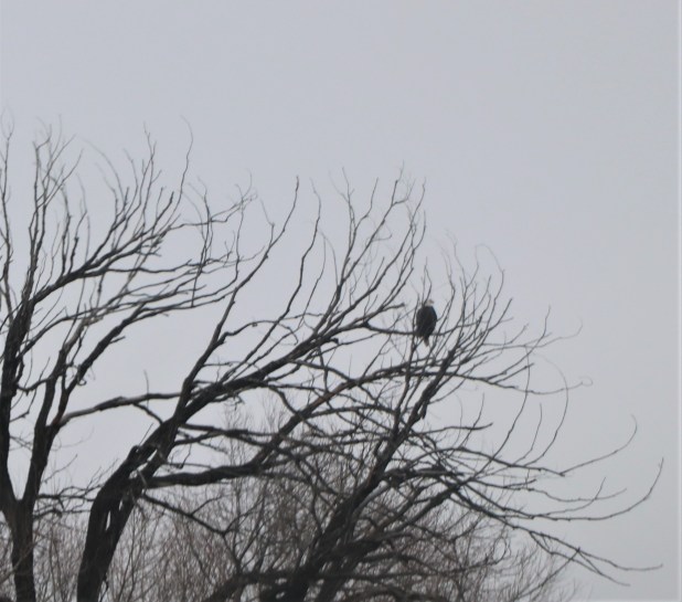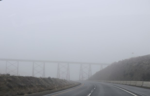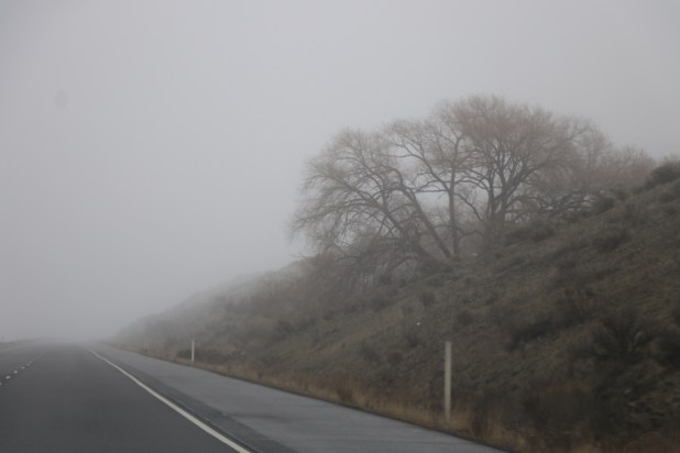 We saw a lot of birds of prey from Cle Elum on through Ellensburg. Hard to get good photos speeding along the interstate at 70 miles plus. This was one eagle I was able to capture. After Ellensburg as we headed up and over Ryegrass we encountered some heavy fog that put a huge strain on our eyes.