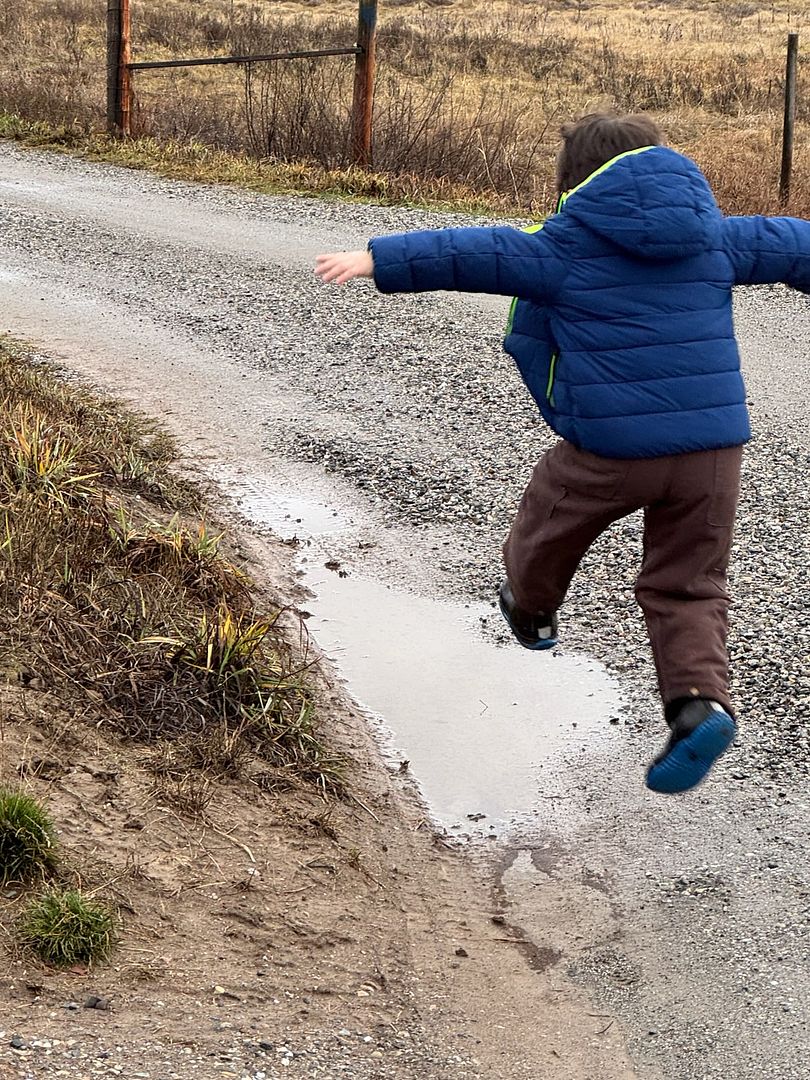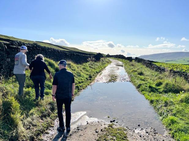 Once we were off the paved road we begin to see what the storm left behind. At this point we could call our walk. Around the puddles and through the Dales.