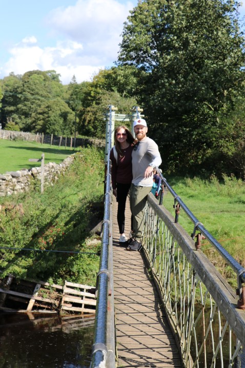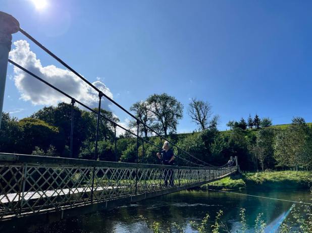 Hebden suspension bridge: The bridge, next to stepping stones, was built in 1884 to connect Hebden with Thorpe after a man drowned trying to cross the Wharfe. Nearby Burnsall Bridge, also on the river, had been swept away in a storm the previous year. The new bridge was built by the Hebden blacksmith using 262 yards of redundant steel rope from the old lead mines. It was restored in 2014/15.