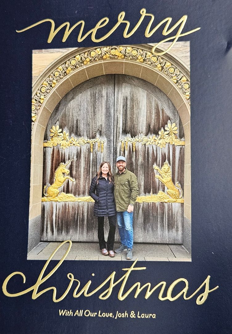 This beautiful doorway was a perfect photo op and it became Josh and Laura’s Christmas card.