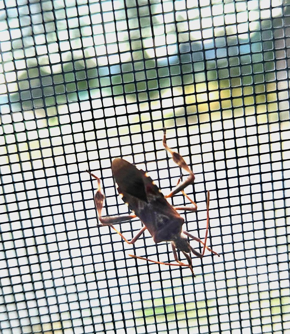 Stink bugs are in abundance this year! This is a male stink bug. The females are rounder in the body.