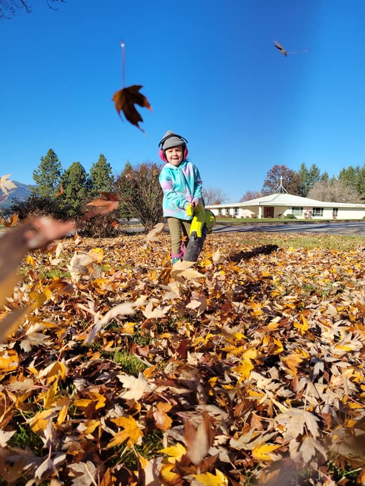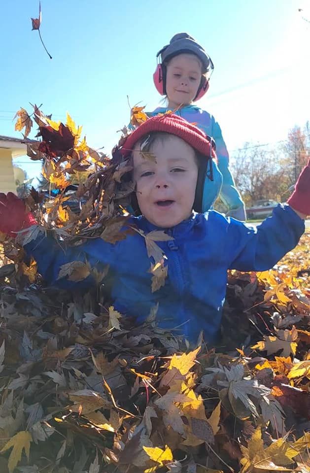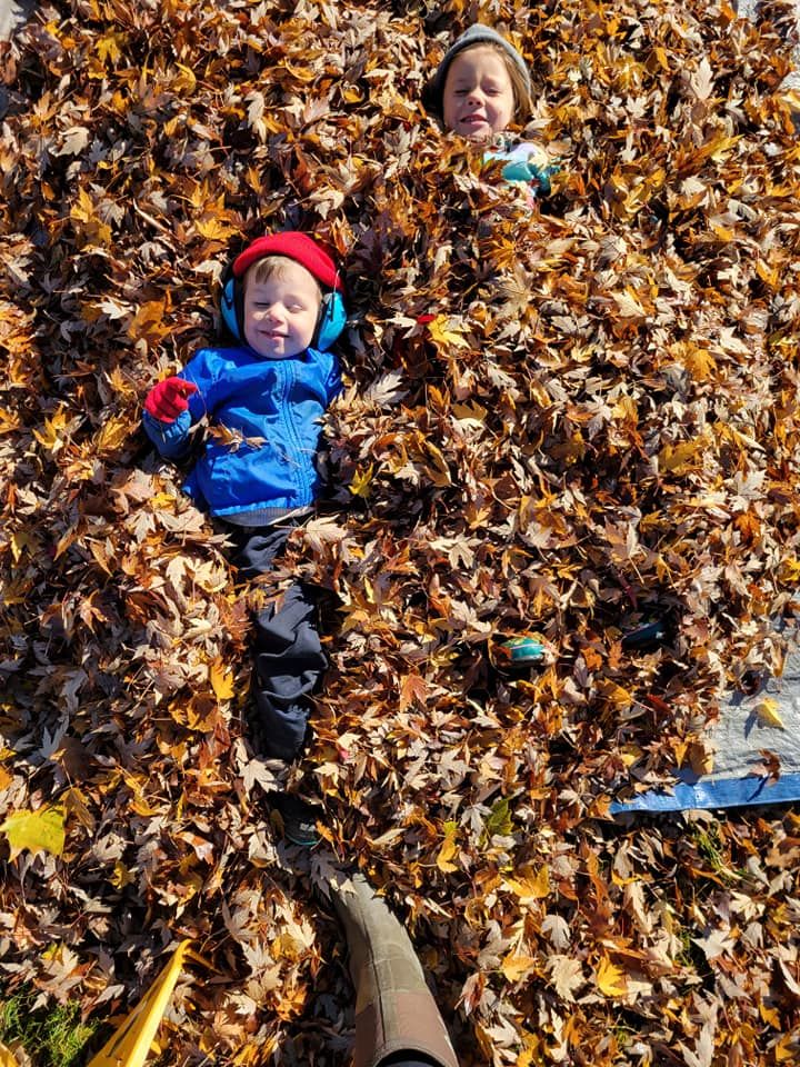 Our Grands are growing up with four seasons and lots of leaves! These photos were from a few years back while helping their Granny blow the leaves into a pile for the city to pick up.