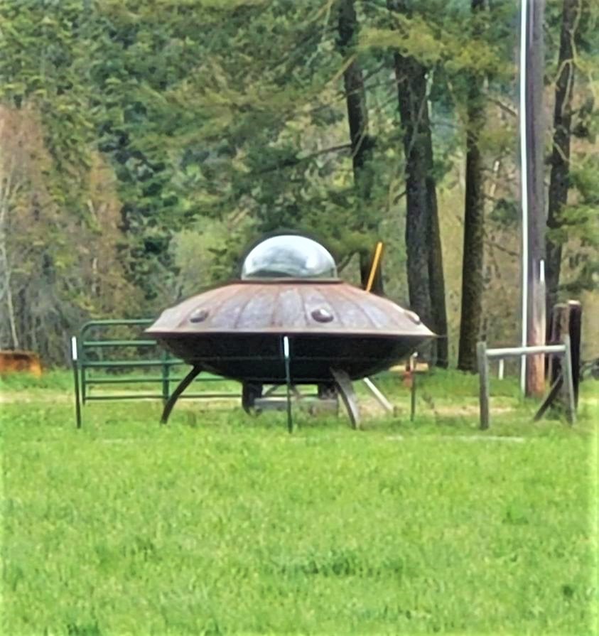 Country/rural properties lend themselves to odd yard art and just plain junk yards. I’d rather see a flying saucer instead of some of the junk piled up on properties around here. You can see pristine properties to junkpile properties along our roads. I keep threatening to find an unusual piece of yard art to stick in our front acreage. I’m not really sure I want to draw unwanted attention to our property, though.