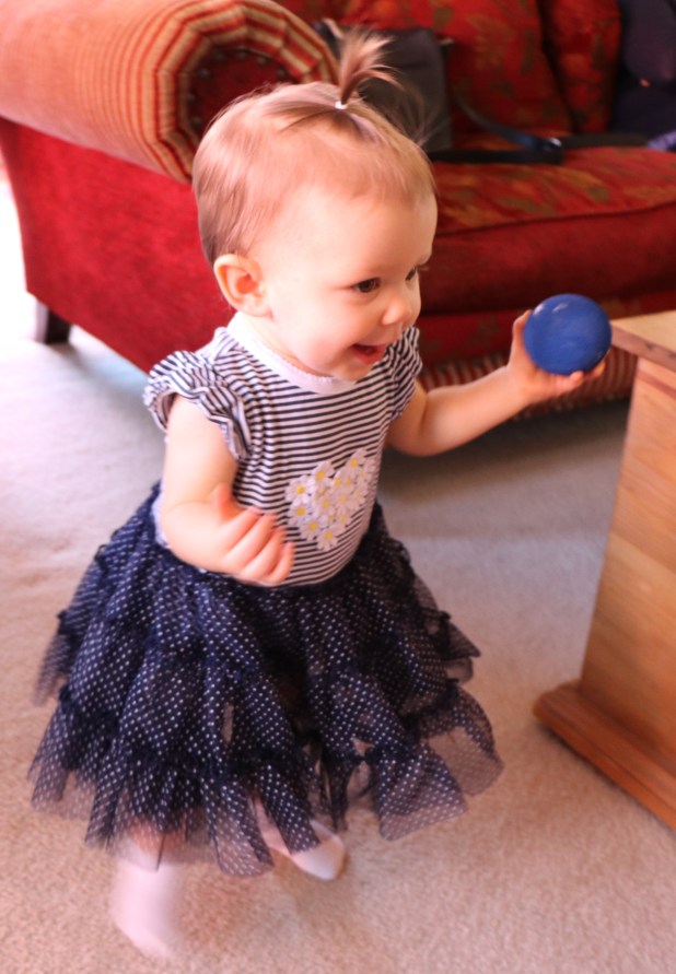 After the meeting she enjoyed multi-tasking, walking and holding the ball.