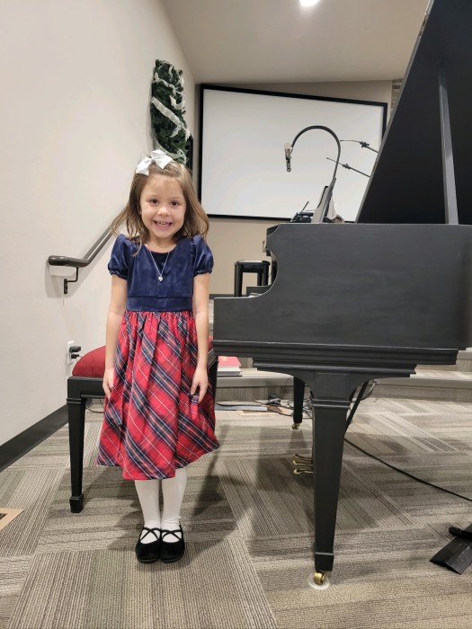 She played two songs, Stand Up Stand Up for Jesus, and Holy Holy Holy. Well done, Addy!