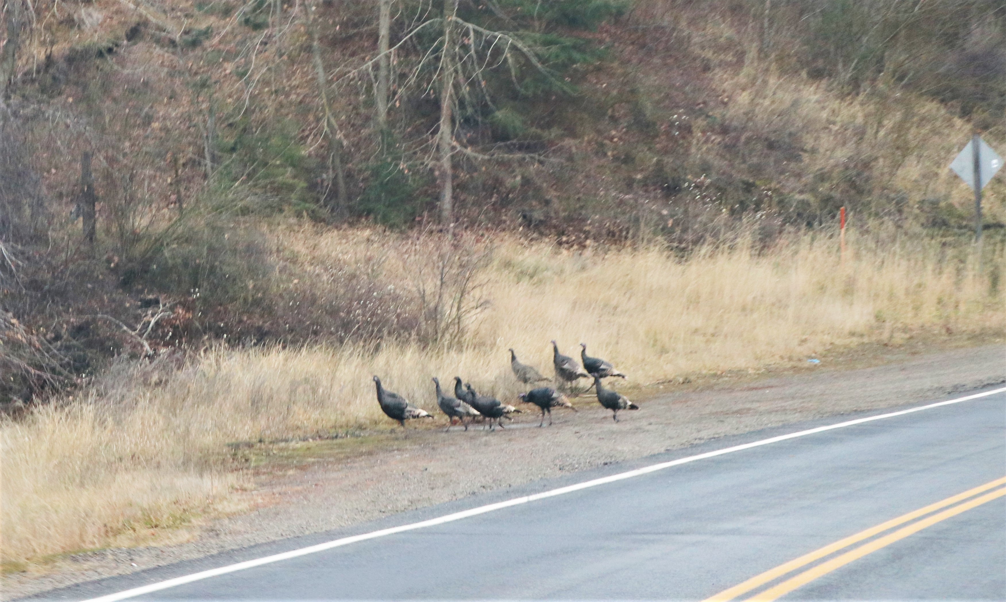 The only hazards on the roads that we encountered 4 separate times on highway 25 were flocks of wild turkeys that decided to cross the road in a line and not in a hurry.