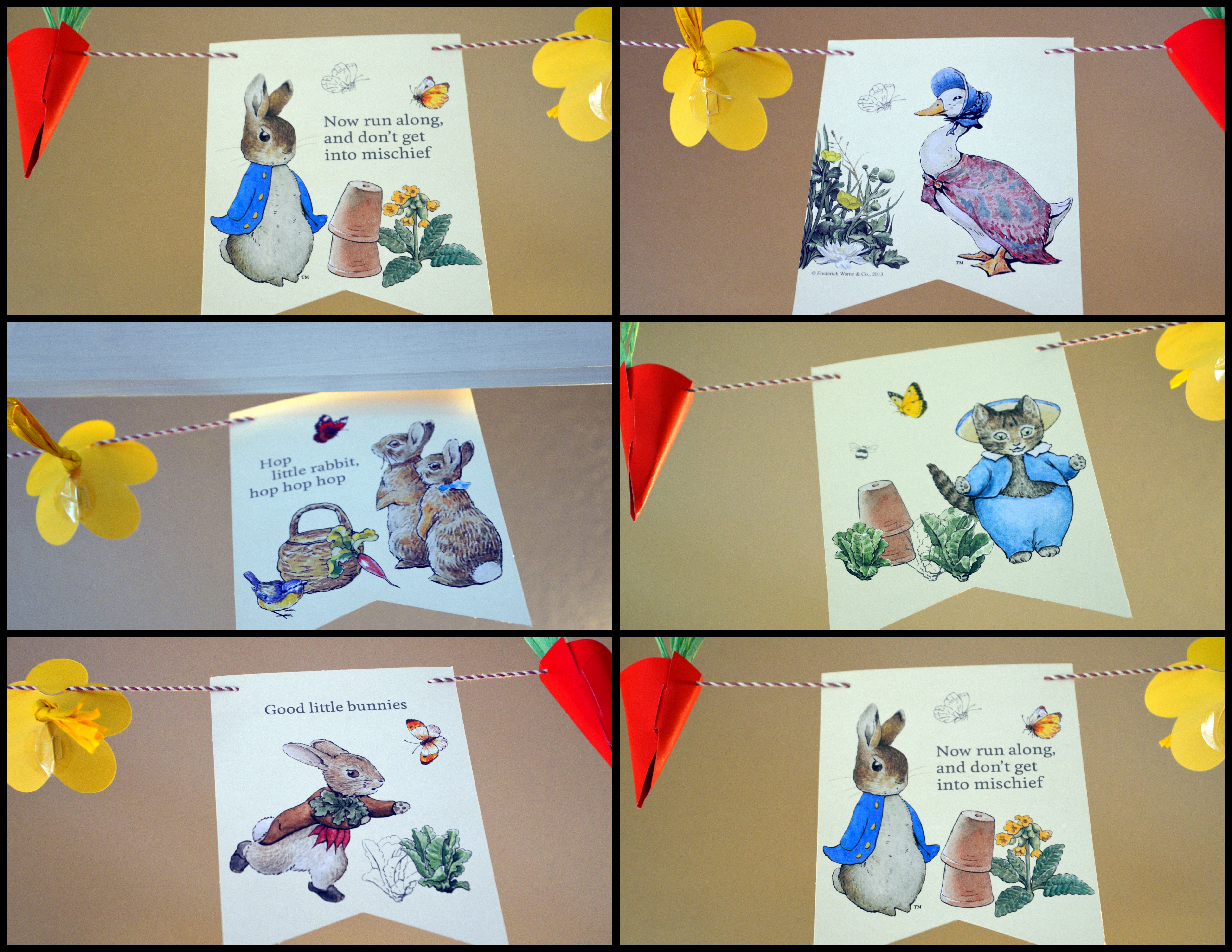 And here’s my new Peter Rabbit (Beatrix Potter) bunting that Katie put together for me including making what the kit called radishes that look like carrots and flowers. Josh and Laura gifted me the bunting kit on my birthday.