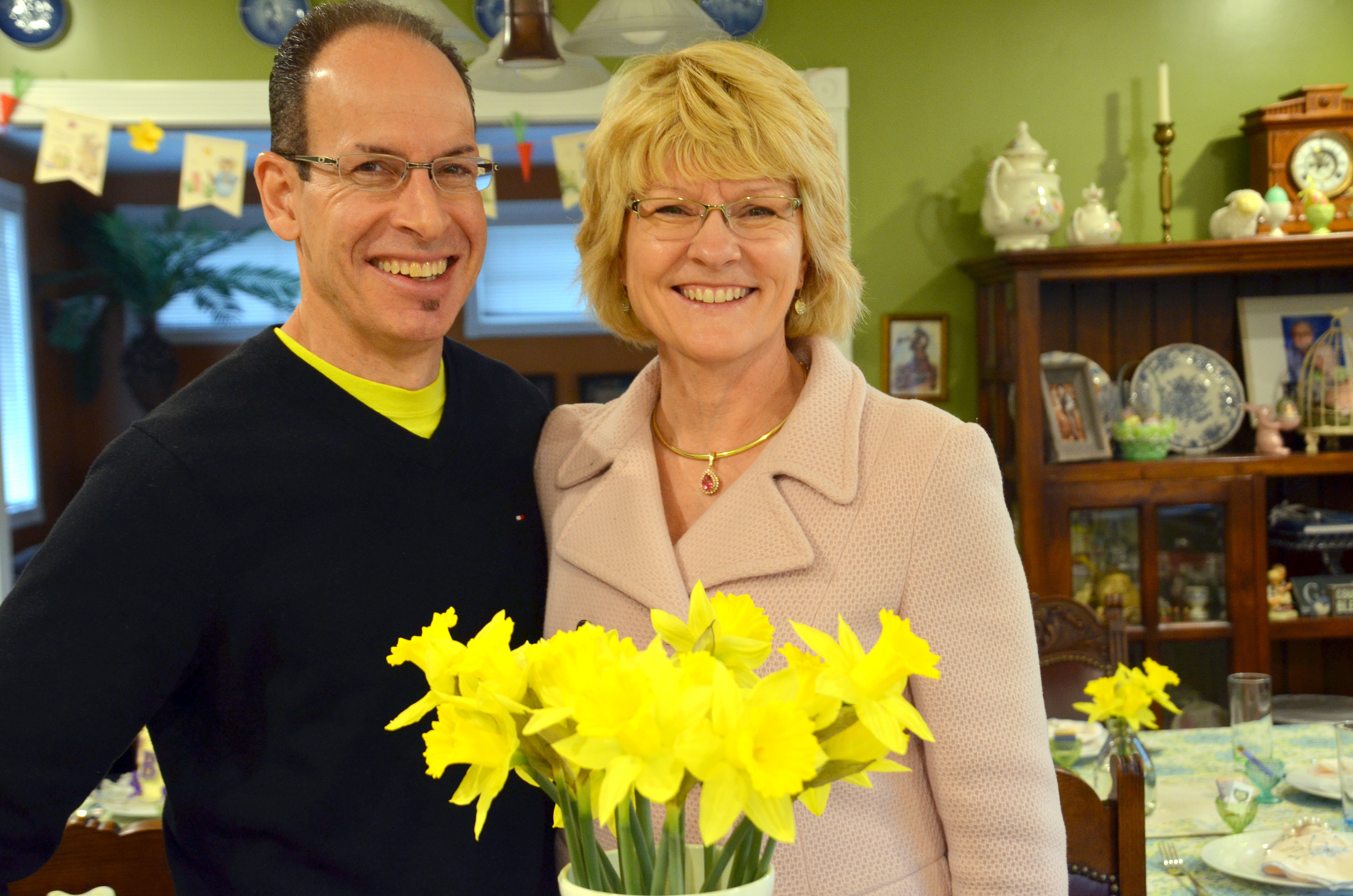 Steve and Lana with a stand up daffodil photo and a silly one, too. Lana is my youngest sister and the only sibling of mine that lives in Washington State.