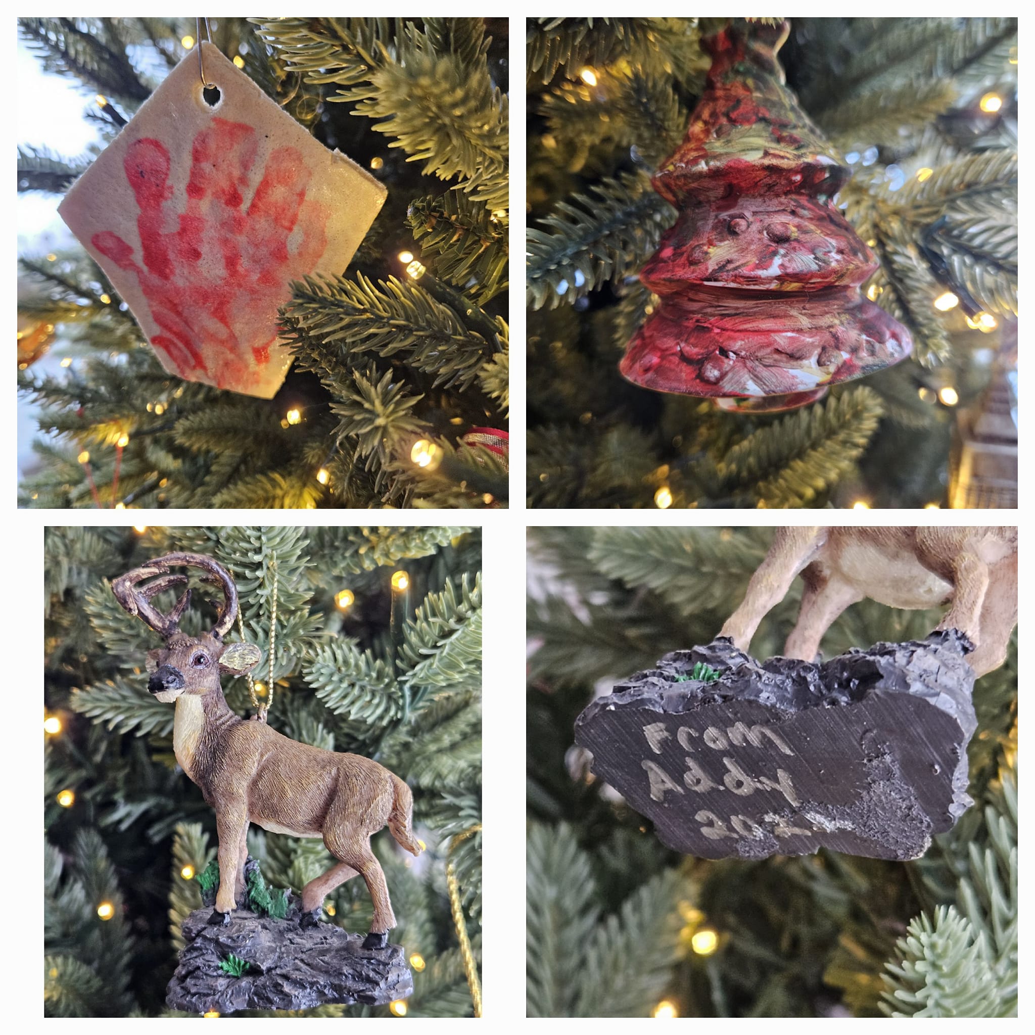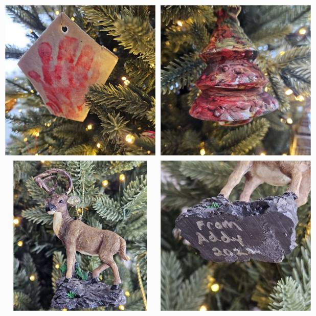 The Stag was from Addy and the Christmas tree was painted by JJ. The handprint is Addy’s.