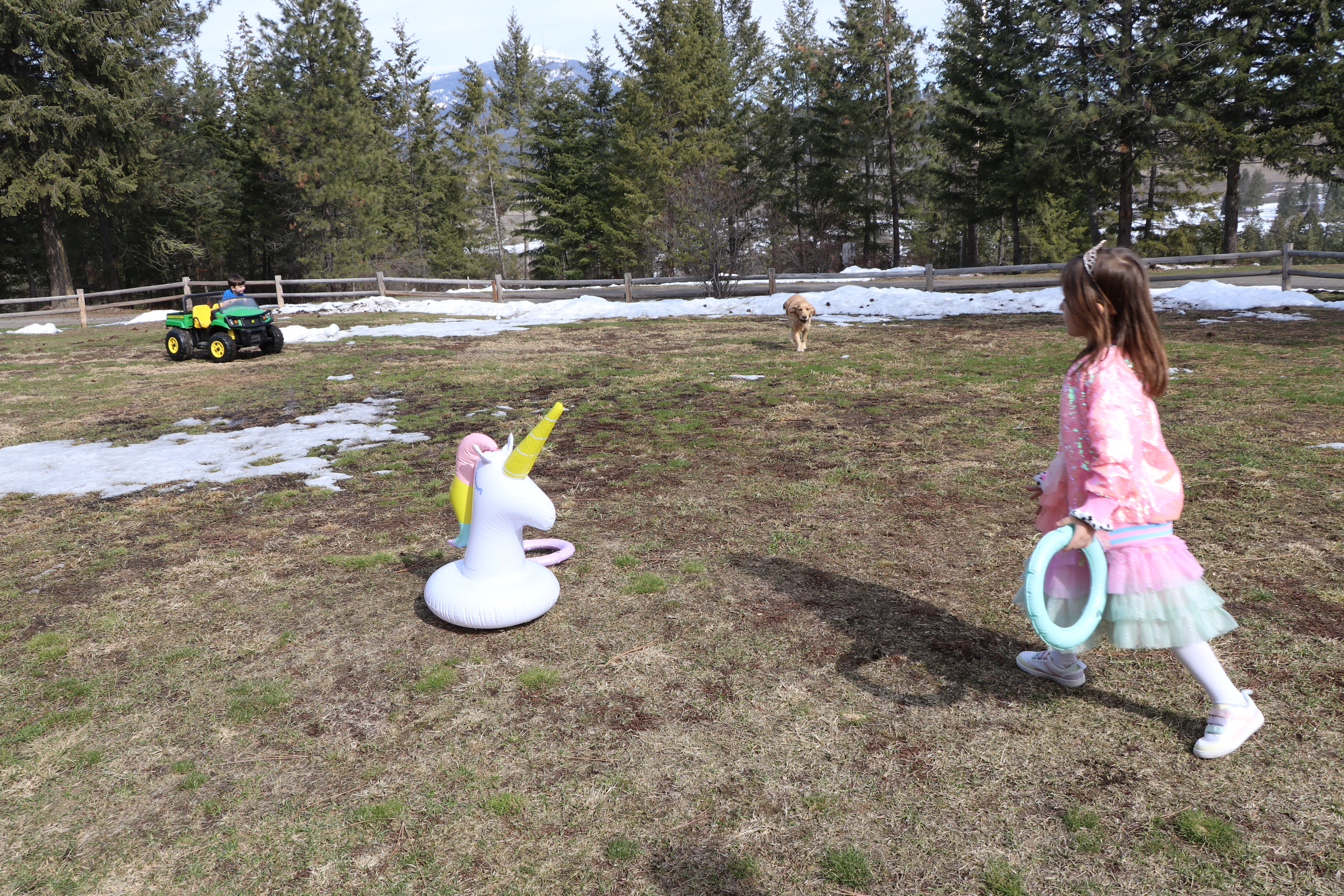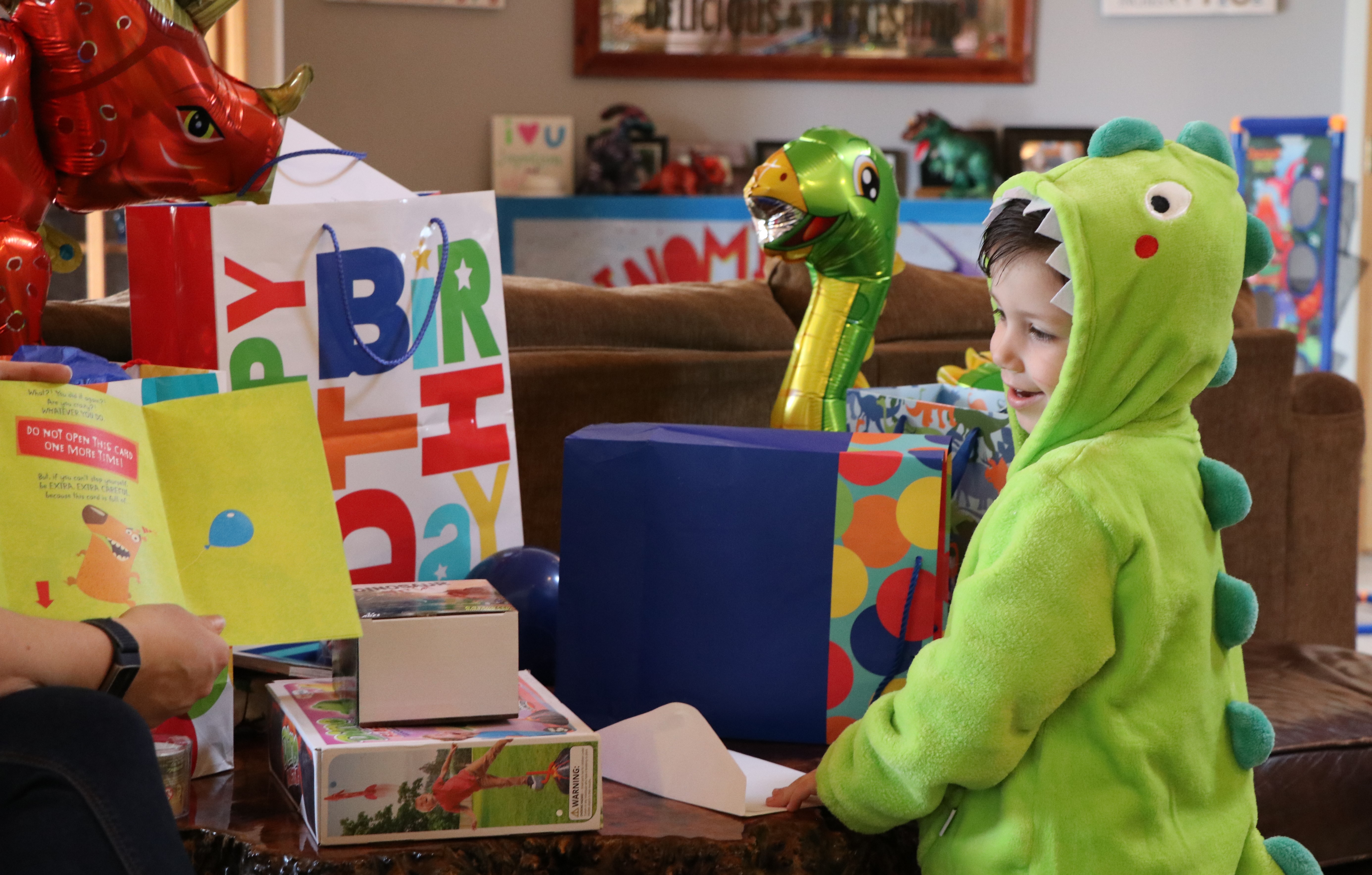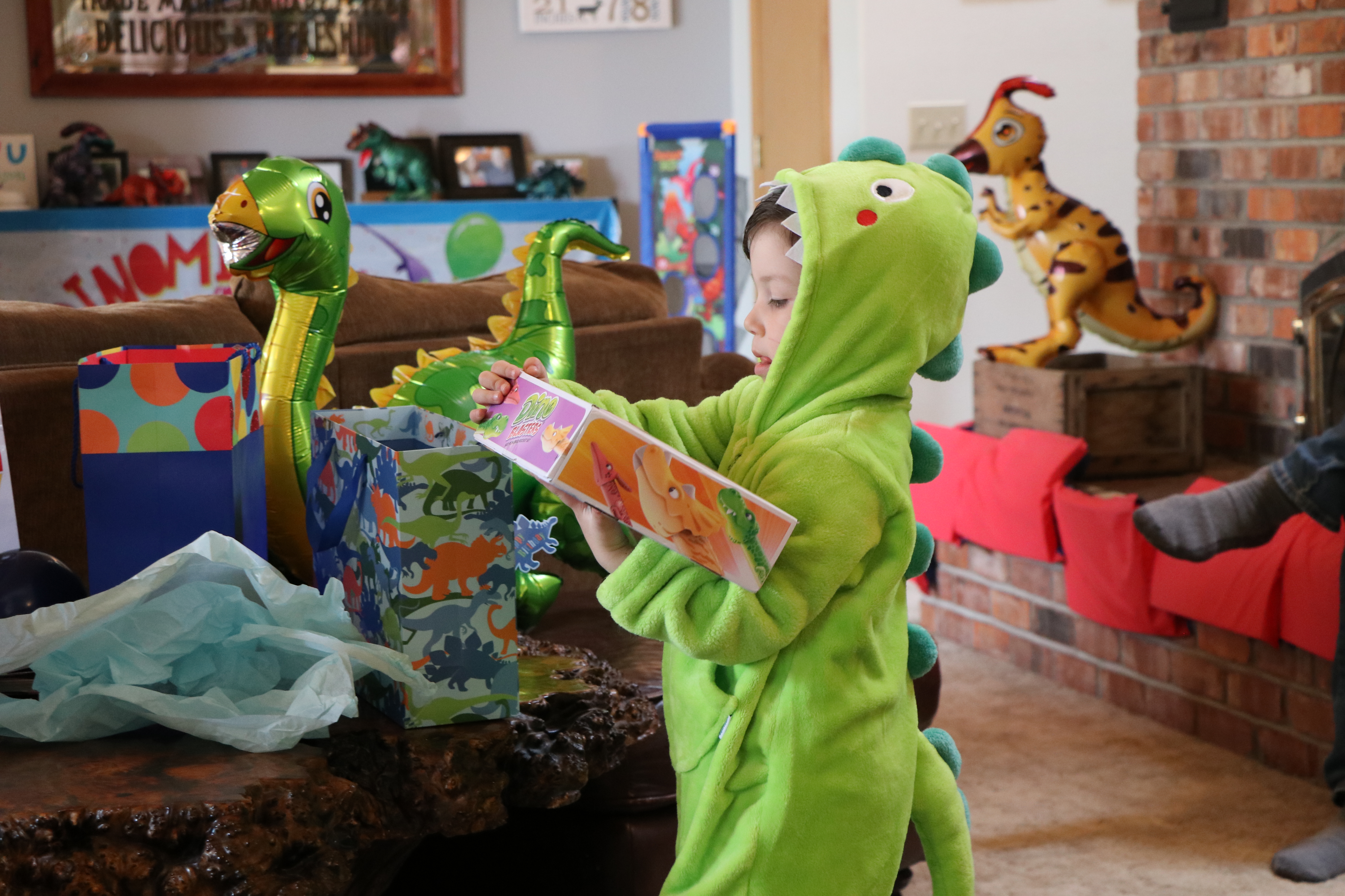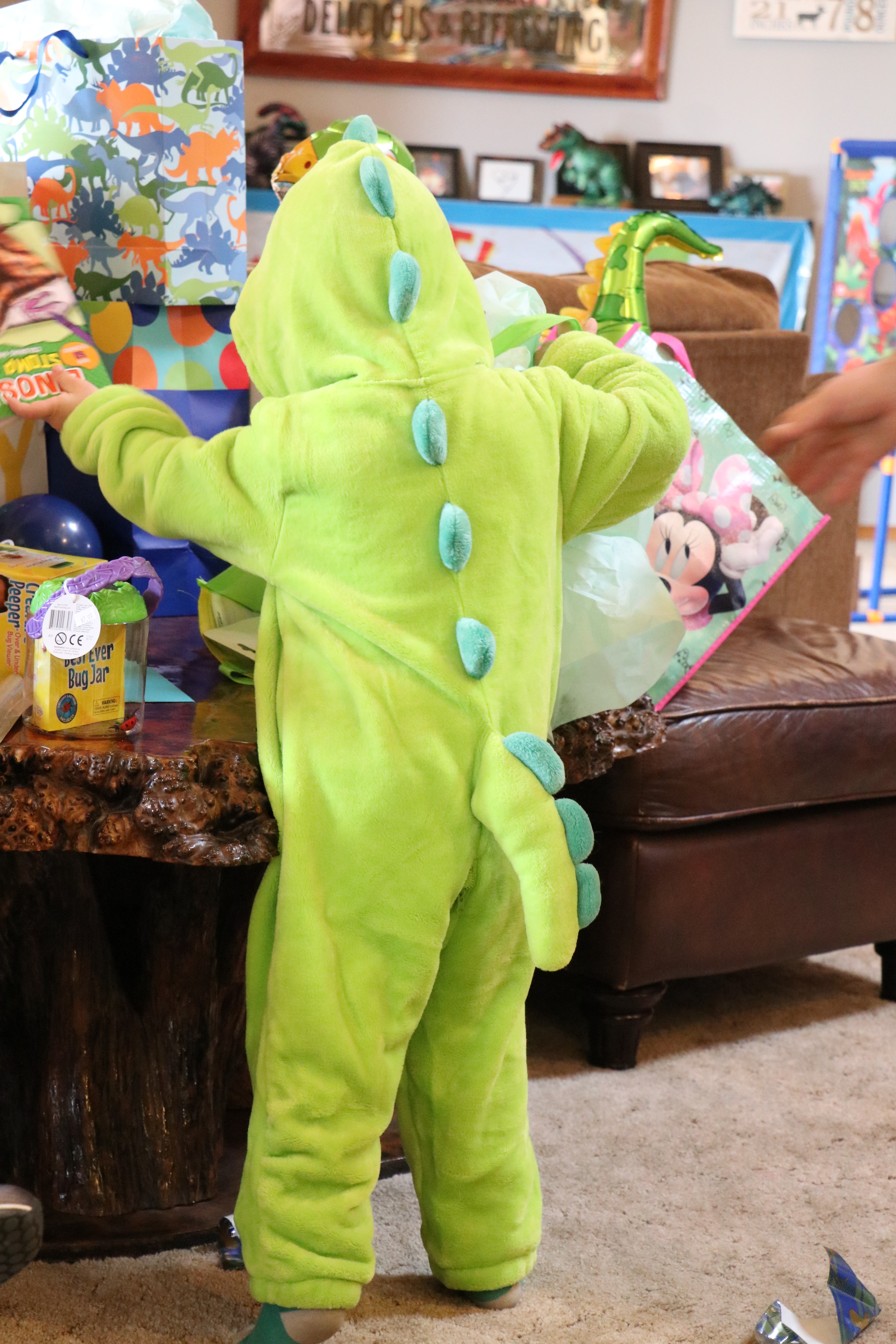 The plan was hatched between the ‘director’ above and the birthday dinosaur to scare all of us with JJ’s ‘scary’ transformation into a green dinosaur.