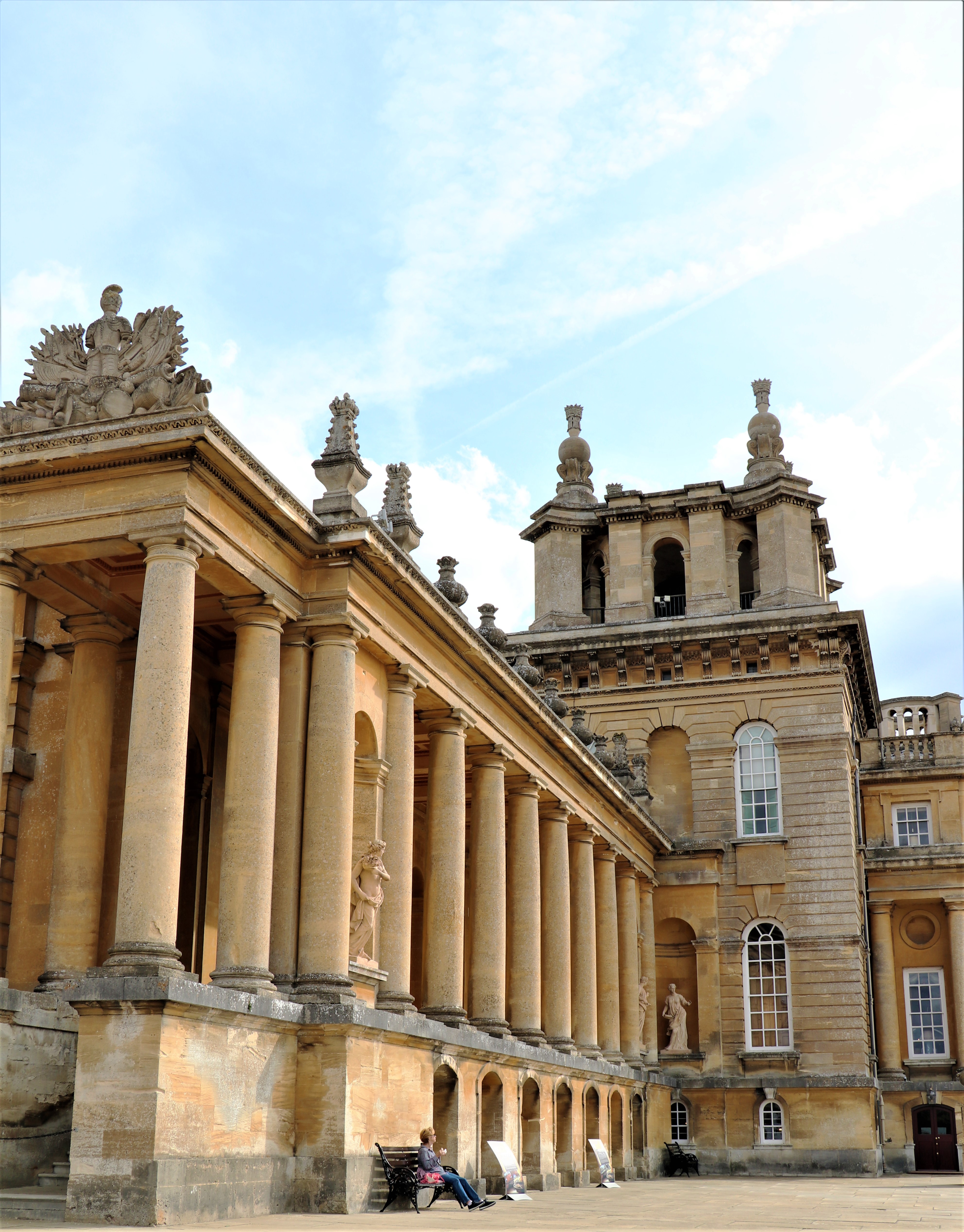 Blenheim Palace is a country house in Woodstock, Oxfordshire, England. It is the seat of the Dukes of Marlborough and the only non-royal, non-episcopal country house in England to hold the title of palace.