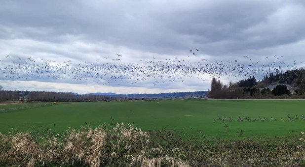 I was driving with our daughter-in-law and noticed all these Canadian Geese on this grassy field. I grabbed my phone and tried to get the photos before they all took off.