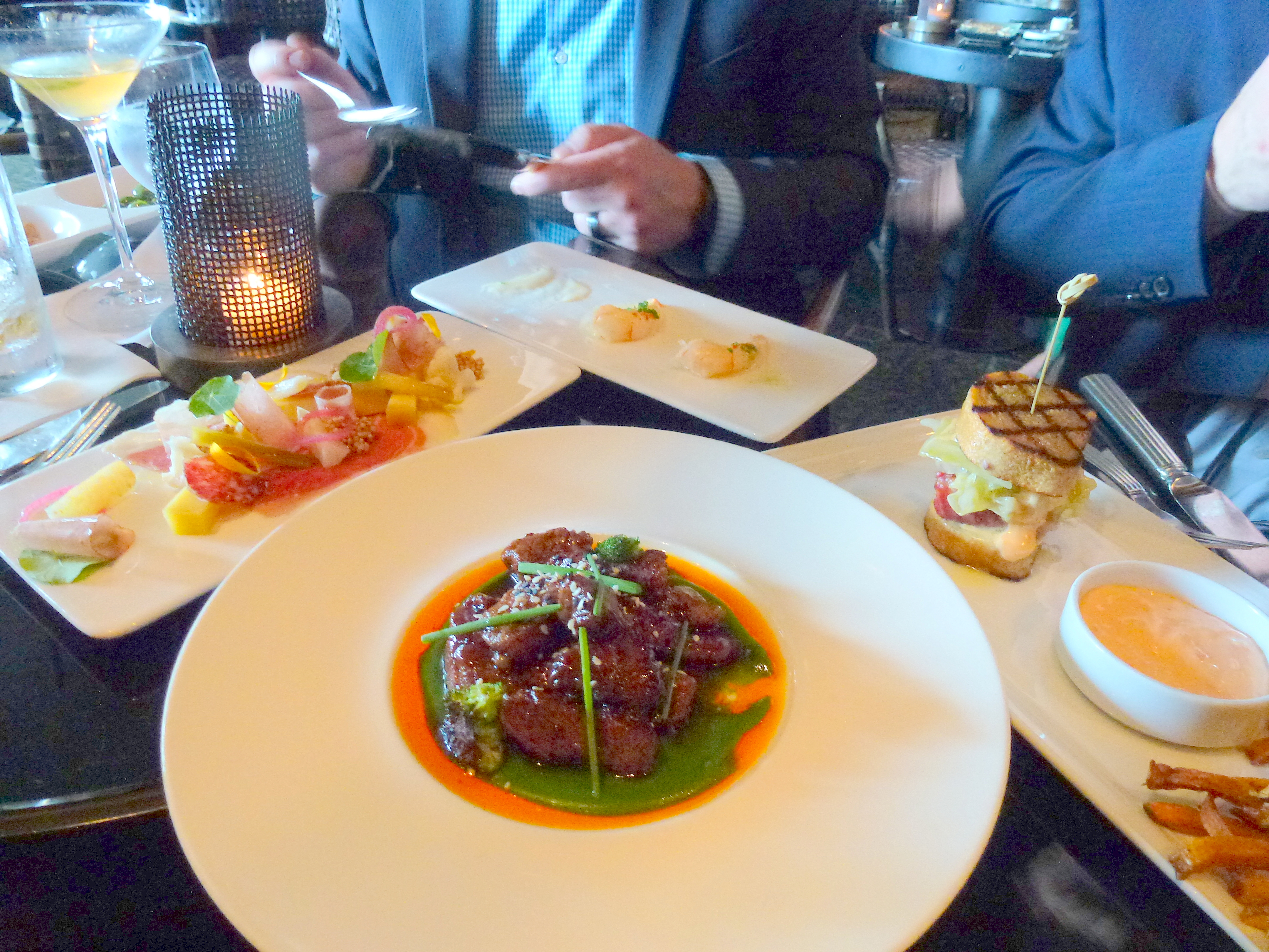 Boiled potatoes, cheese, and bread are the main ingredients along with meat for a Raclette and then pickles and other pickled sides. The skies the limit or what you can fit on your table is the limit of other fun things to eat cold or to grill. We chose rib-eye steak, red peppers, mushrooms, onions, endive, beets, and baby corn. We also a made a nice garlic, chive and butter mix, a little goes a long way.