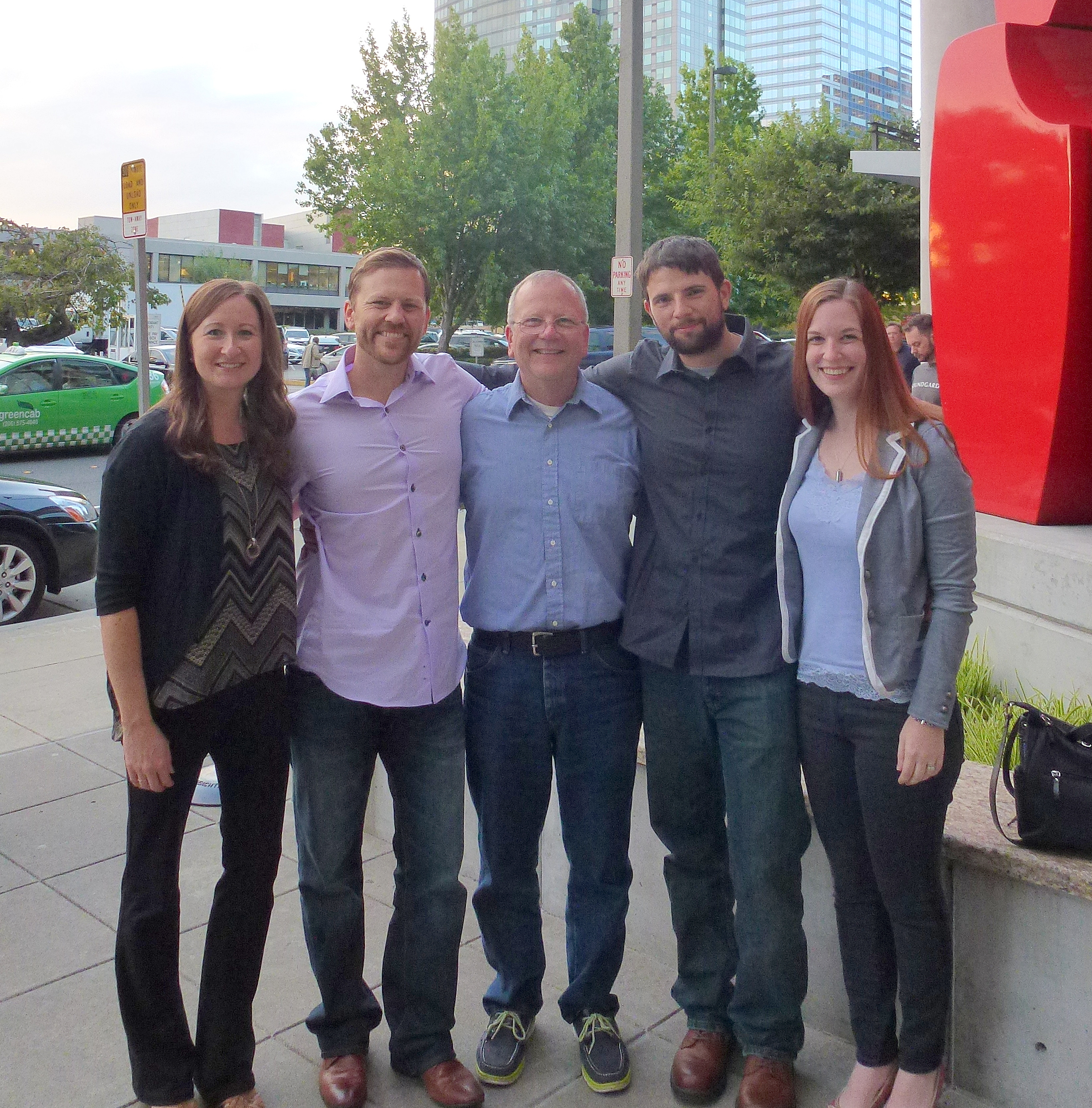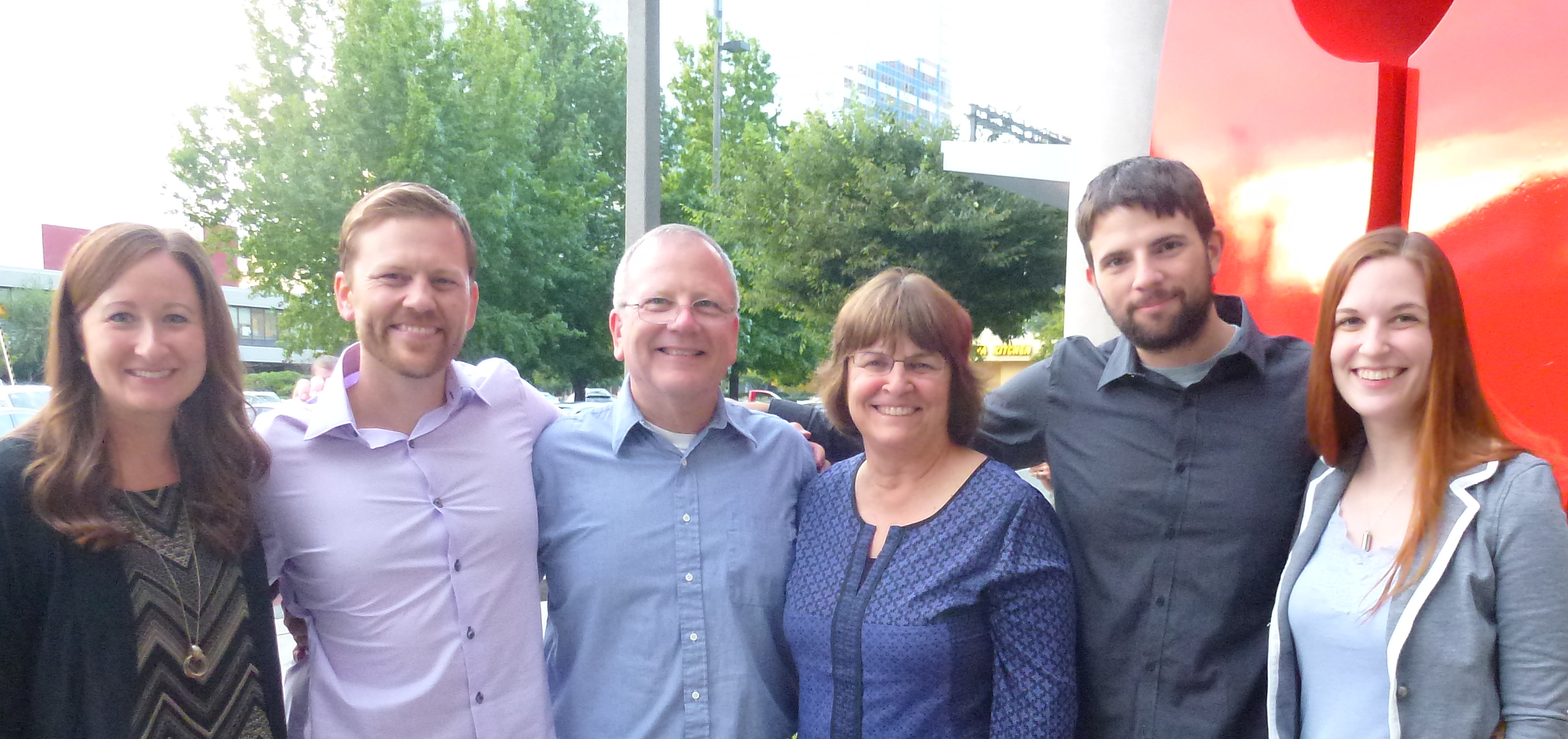 I had a major photo fail and didn’t take a photo of us cooking at the table or a photo of our special guests but here is one from last Christmas of Aaron, Stephanie, and two of their daughters and one of their nieces.