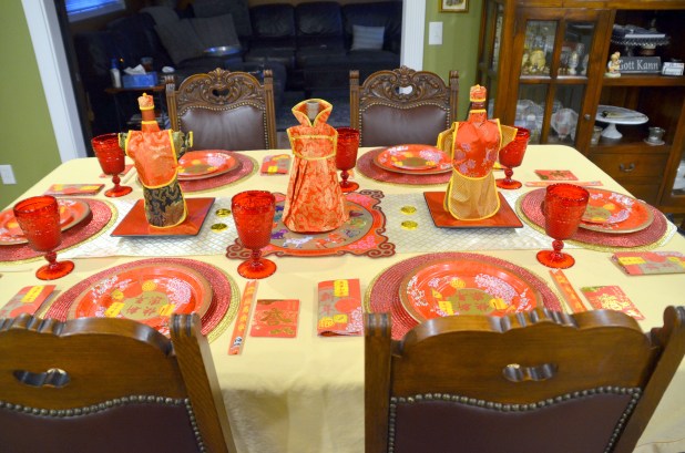 The lanterns, dragons, plates and napkins came from a party store.