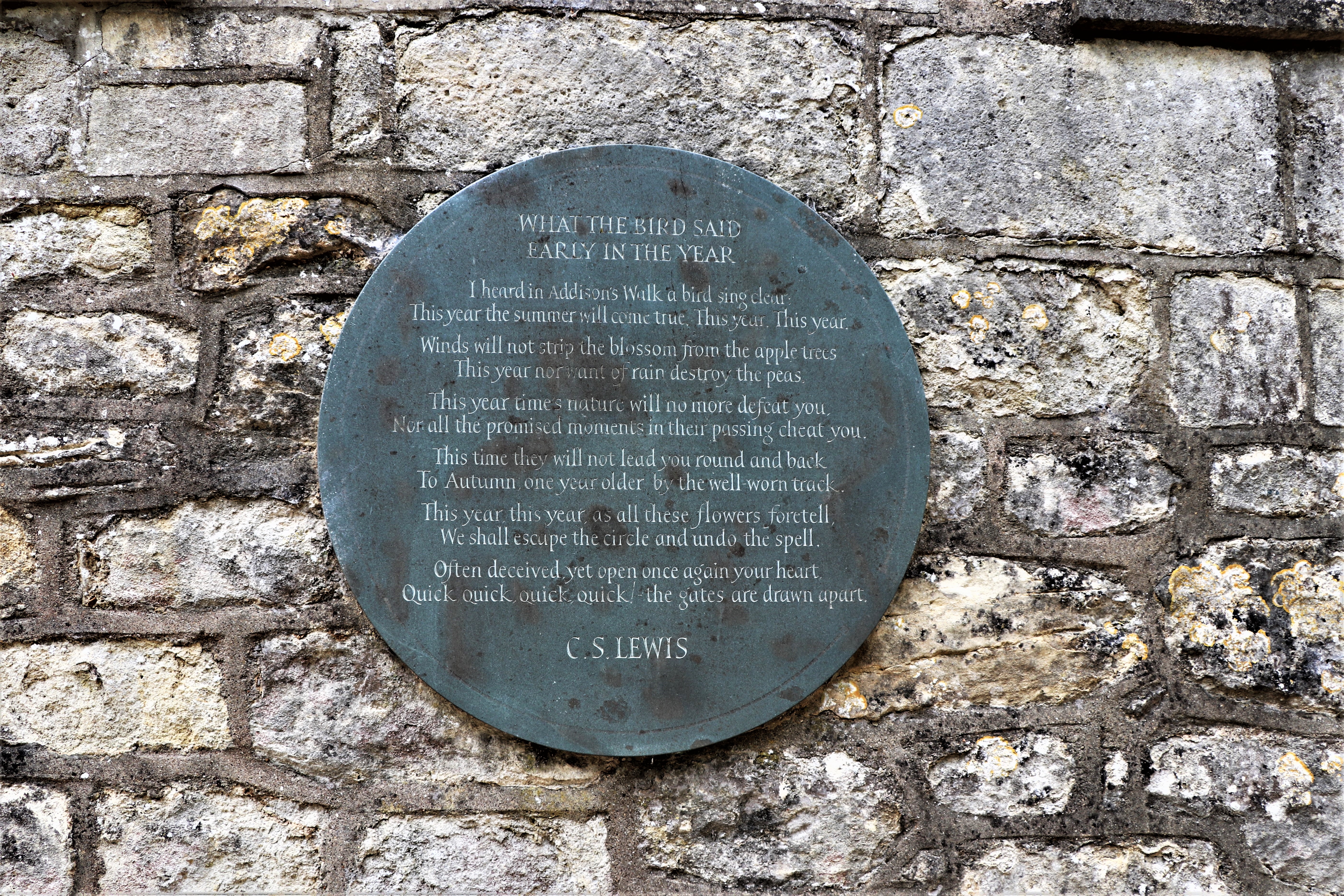 On this visit we walked further along to this second stone bridge to see this memorial tablet presented to the College by the Oxford University C.S. Lewis Society, to mark the centenary of Lewis’s birth, November 29, 1898. So this tablet has been here since 1998. I copied the poem below so you would be able to read it since the tablet has weathered over the last 25 years.