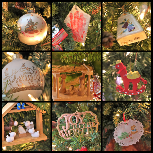 The first Christmas ornament we were gifted as a wedding gift and some early family ornaments represent these special times in our history.