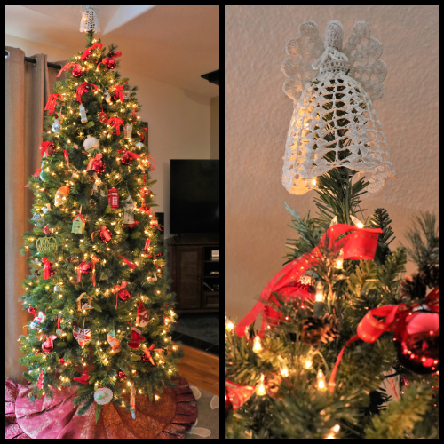 This year we stumbled on a good deal for a pre-lit artificial tree so we surrendered to the idea for the convenience. The Angel topper has been with us for most of our Christmases.