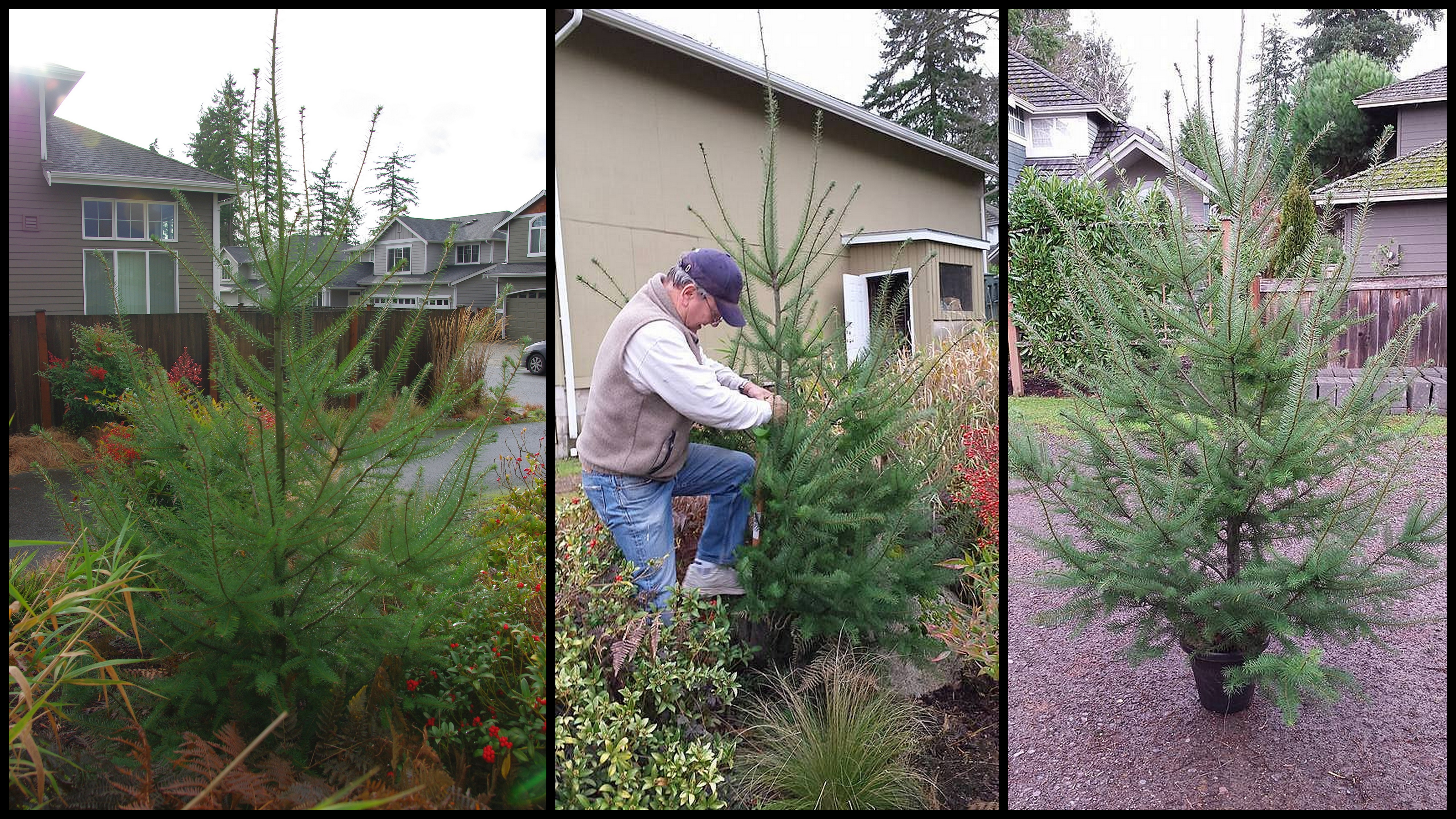 This year it took most of the afternoon for the branches to relax as we had freezing temperatures here in the Seattle area and the tree was frozen. As it thawed we could see that it was another fine Mystery Tree choice. We’ve resigned ourselves to be happy with however it might look. Once the lights and decorations are added I’ll show more photos.