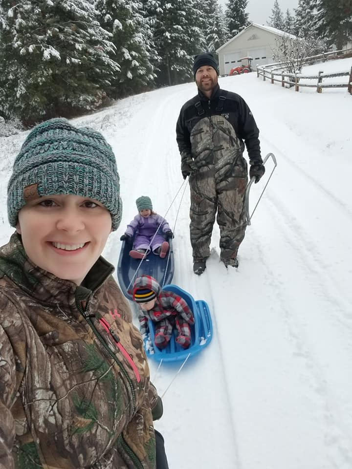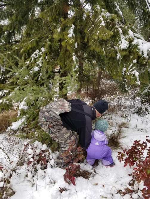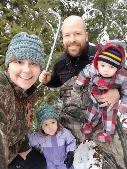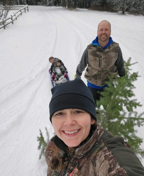 The little family trudged out on their 20 acres to find the right tree for 2019.