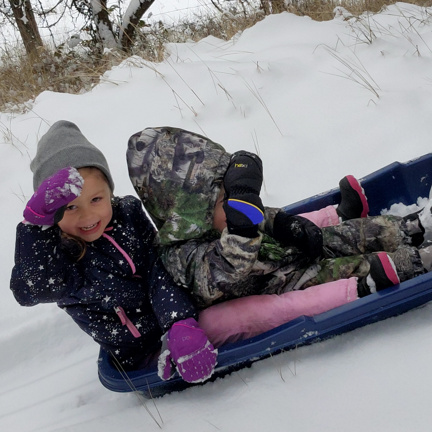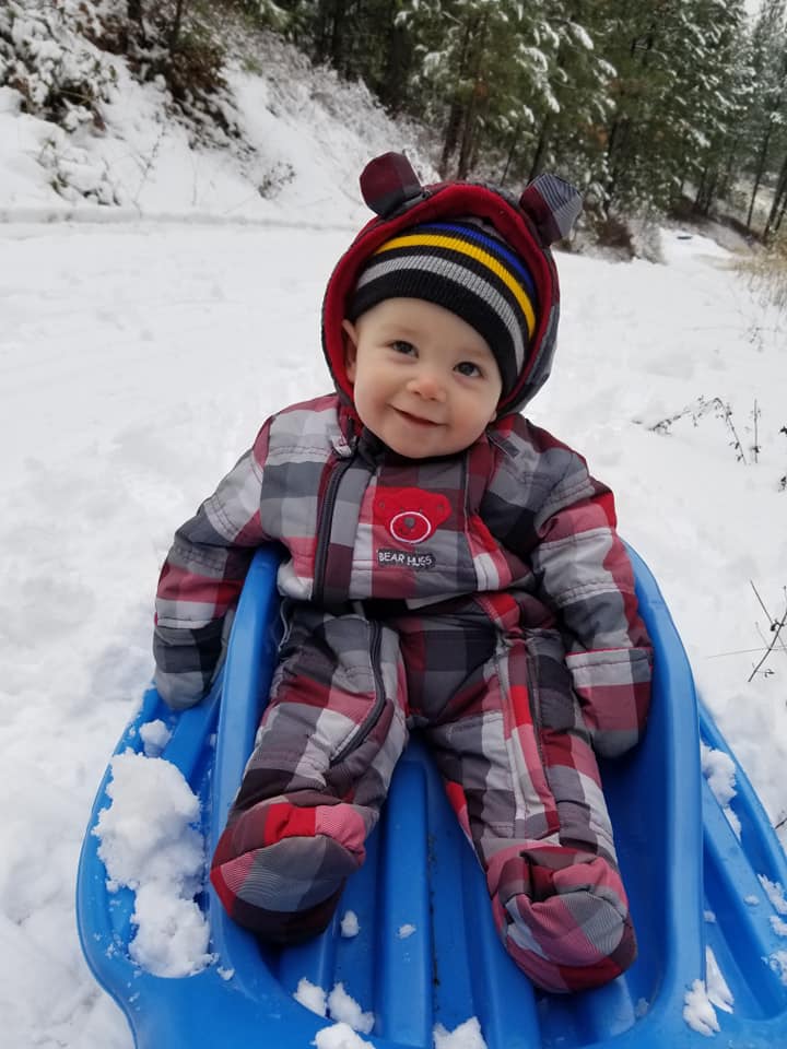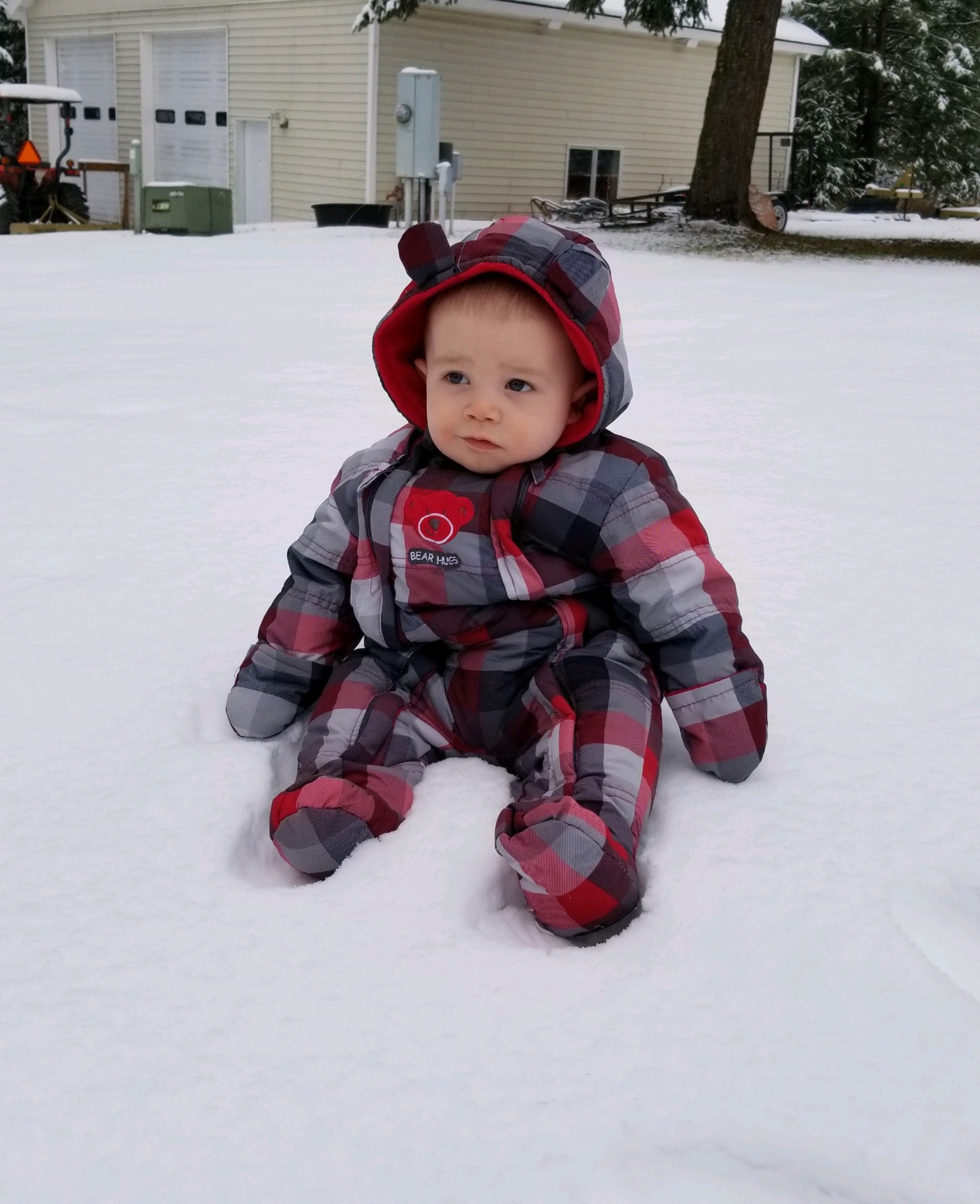 Sister will help him enjoy the snow! Next year he’ll want to pull the sled.