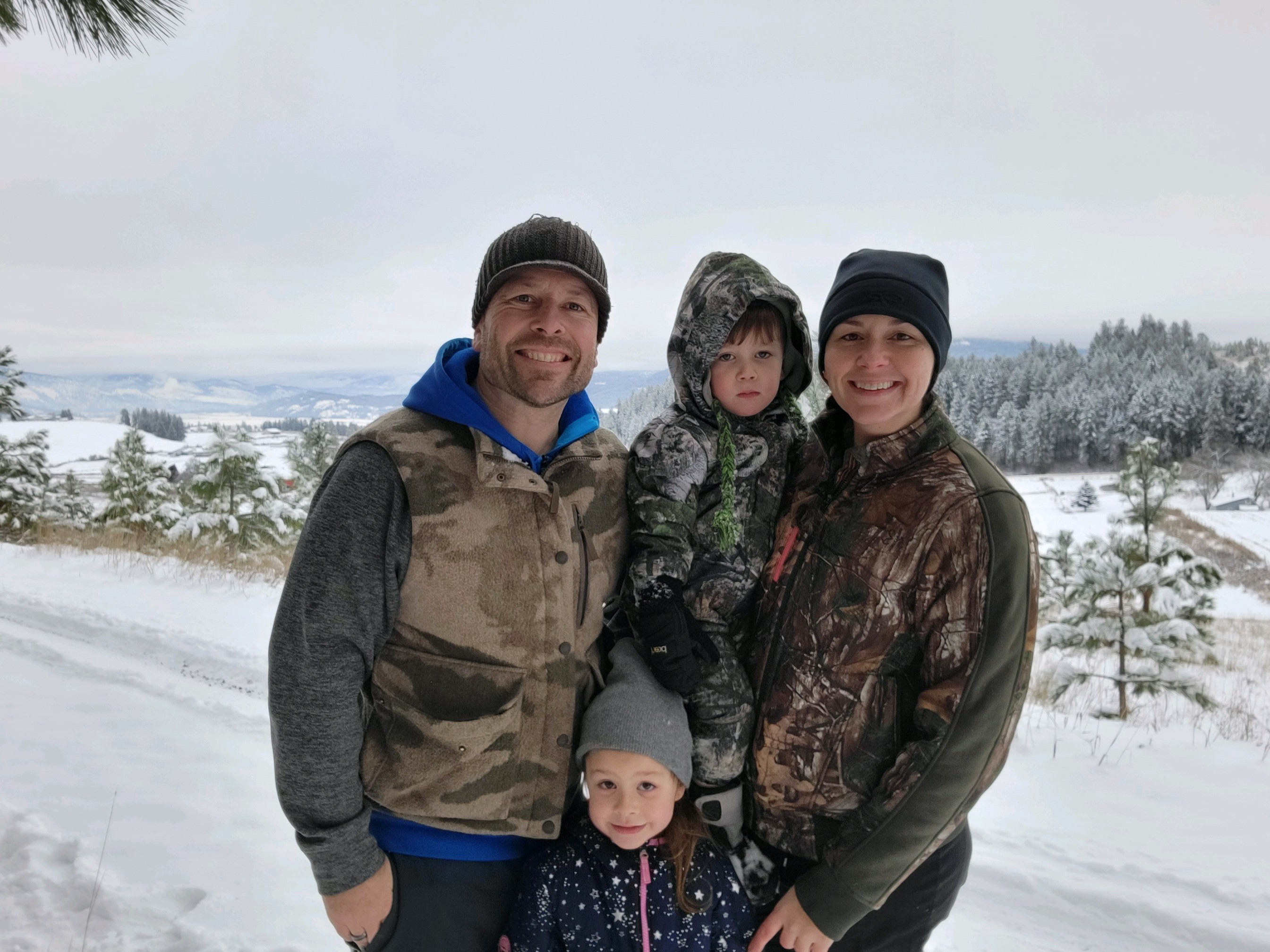 Christmas in the country when you own 20 acres and find your Christmas tree on those acres. This is our son’s family and his land.