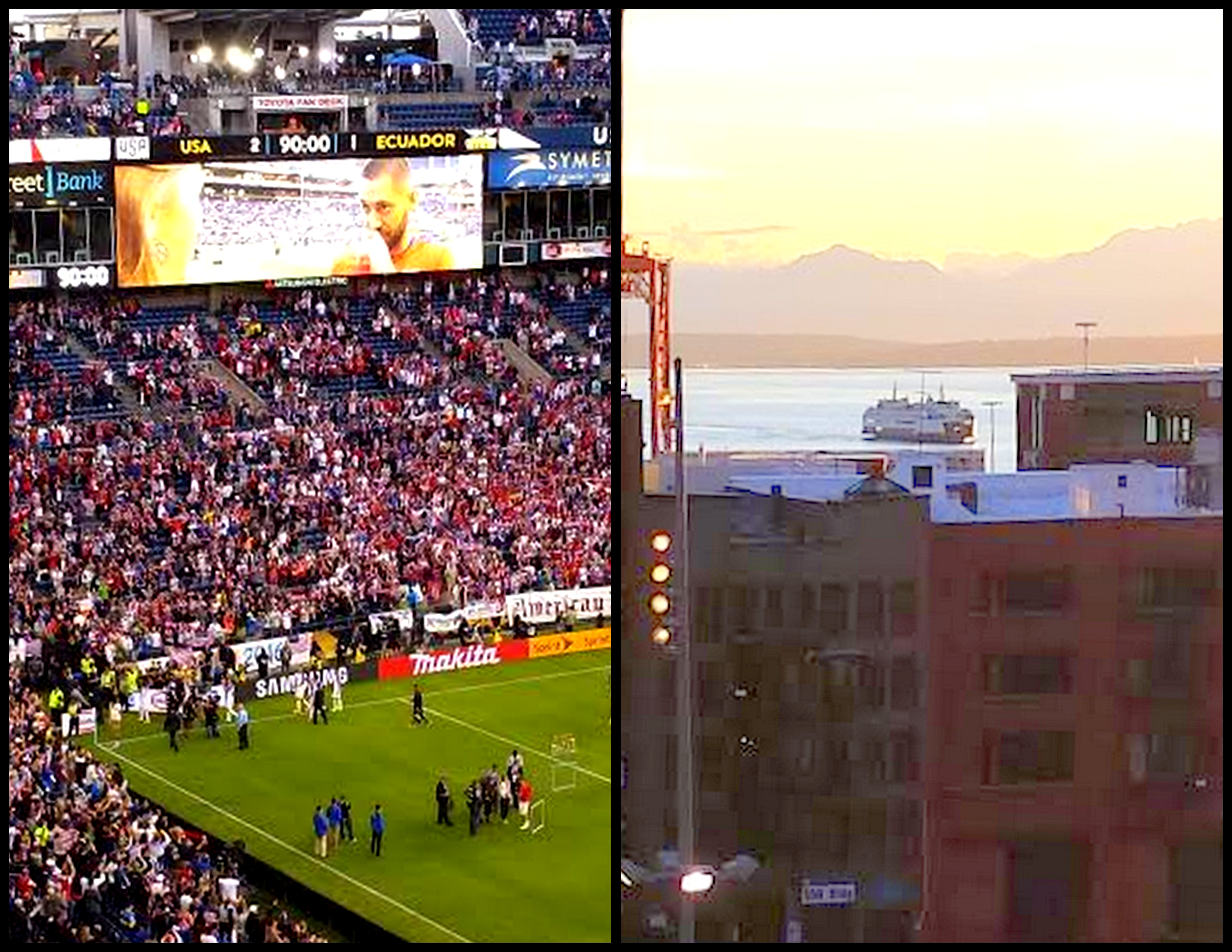 Our son Josh, daughter in love Laura and ellen b. purchased tickets for the U.S.A. v. Ecuador quarterfinal game hosted by Seattle. I pulled out my USA gear to take to the game.